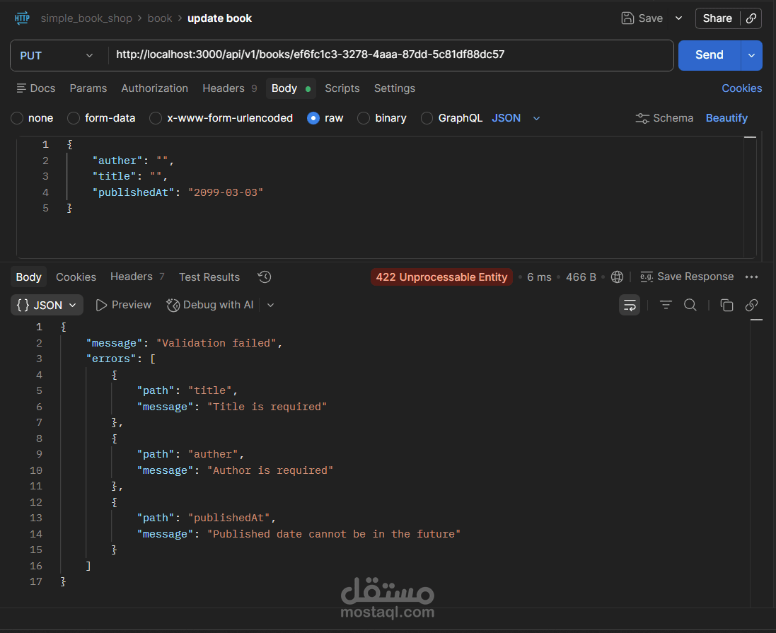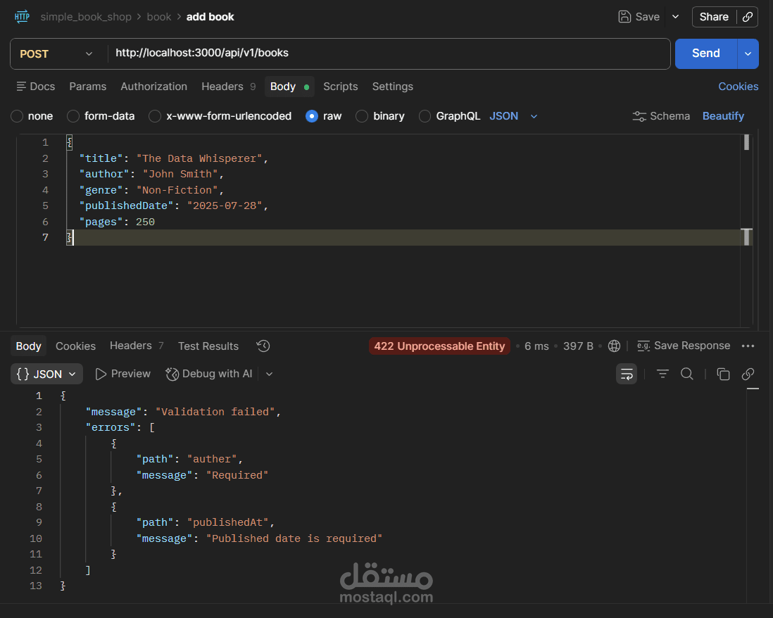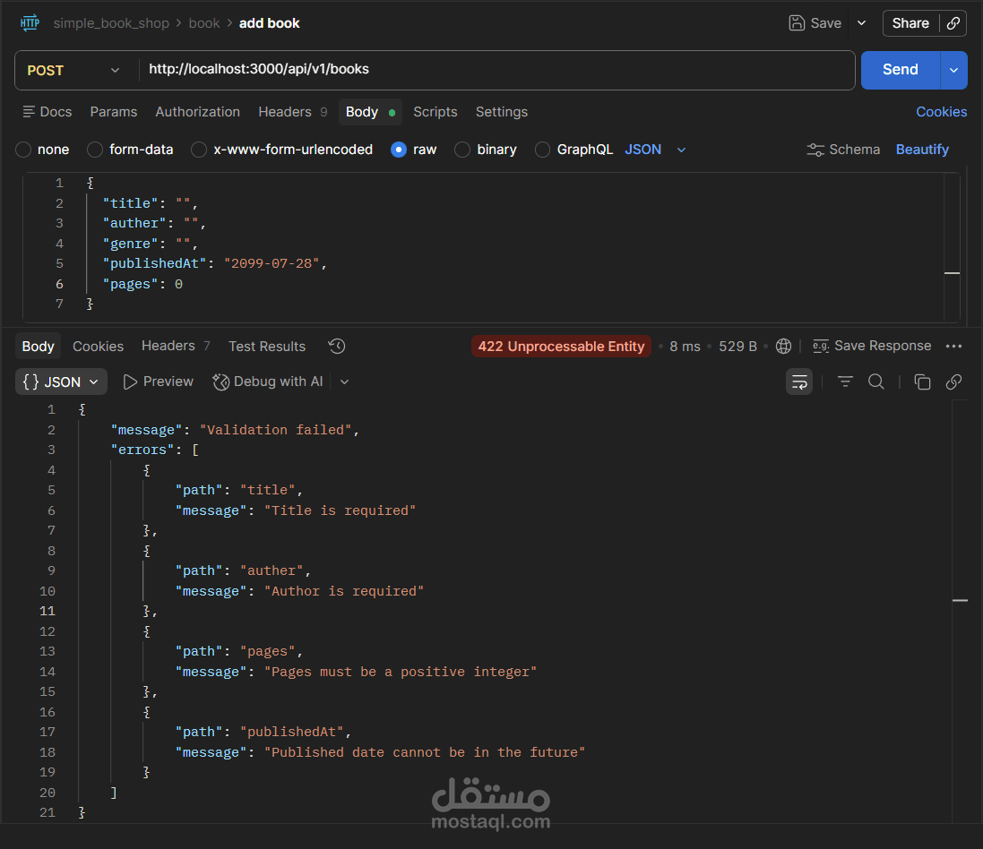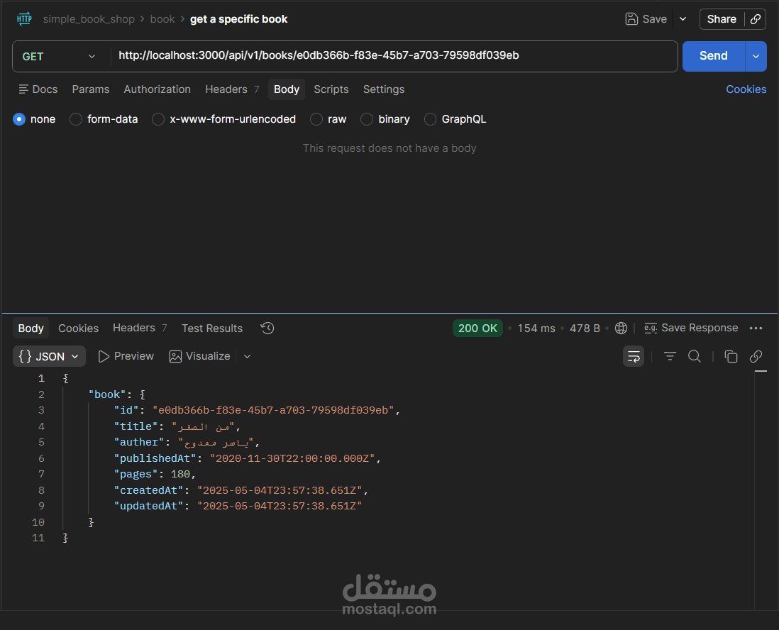 مشروع Book Store API هو تطبيق(Back-End) كامل لإدارة متجر كتب إلكتروني، مبني بـ Node.js و TypeScript باستخدام إطار عمل Express، مع قاعدة بيانات PostgreSQL يتم التعامل معها عبر Prisma ORM.