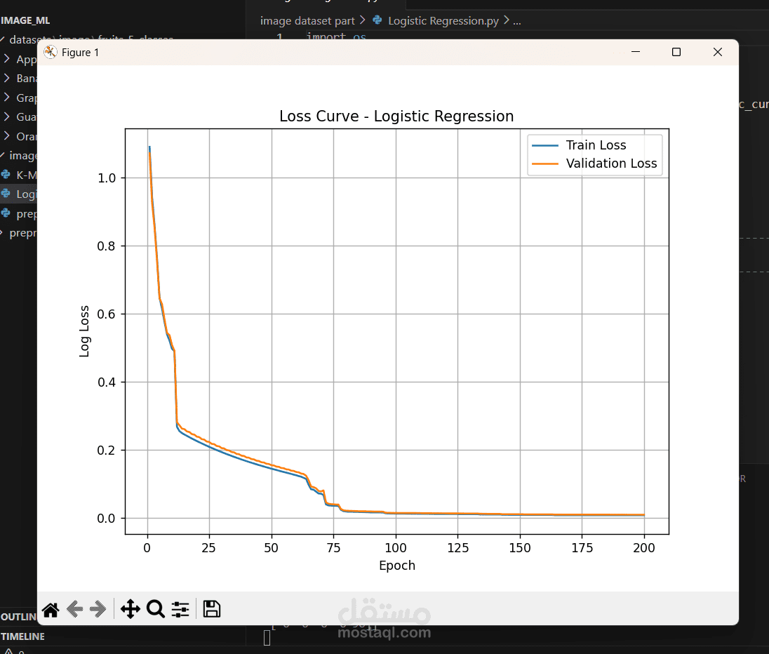 The confusion matrix shows a perfectly diagonal structure, indicating that the model correctly classified all test samples. This suggests that the HOG feature representation combined with Logistic Regression is highly effective for this dataset. The high accuracy can also be attributed to the controlled nature of the dataset, where fruits appear on a uniform background with minimal variation.