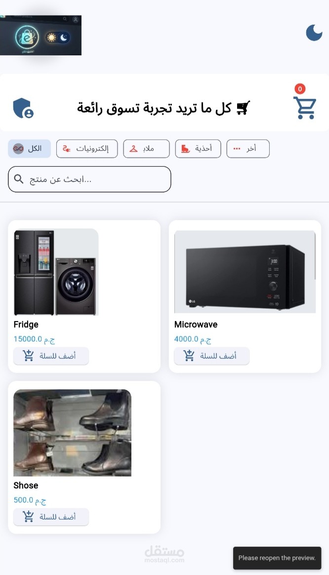 متجر الكتروني لعرض المنتجات وبيعها والتواصل مع العملاء يتميز بالبساطة وعرض المنتجات بشكل منظم وواضح