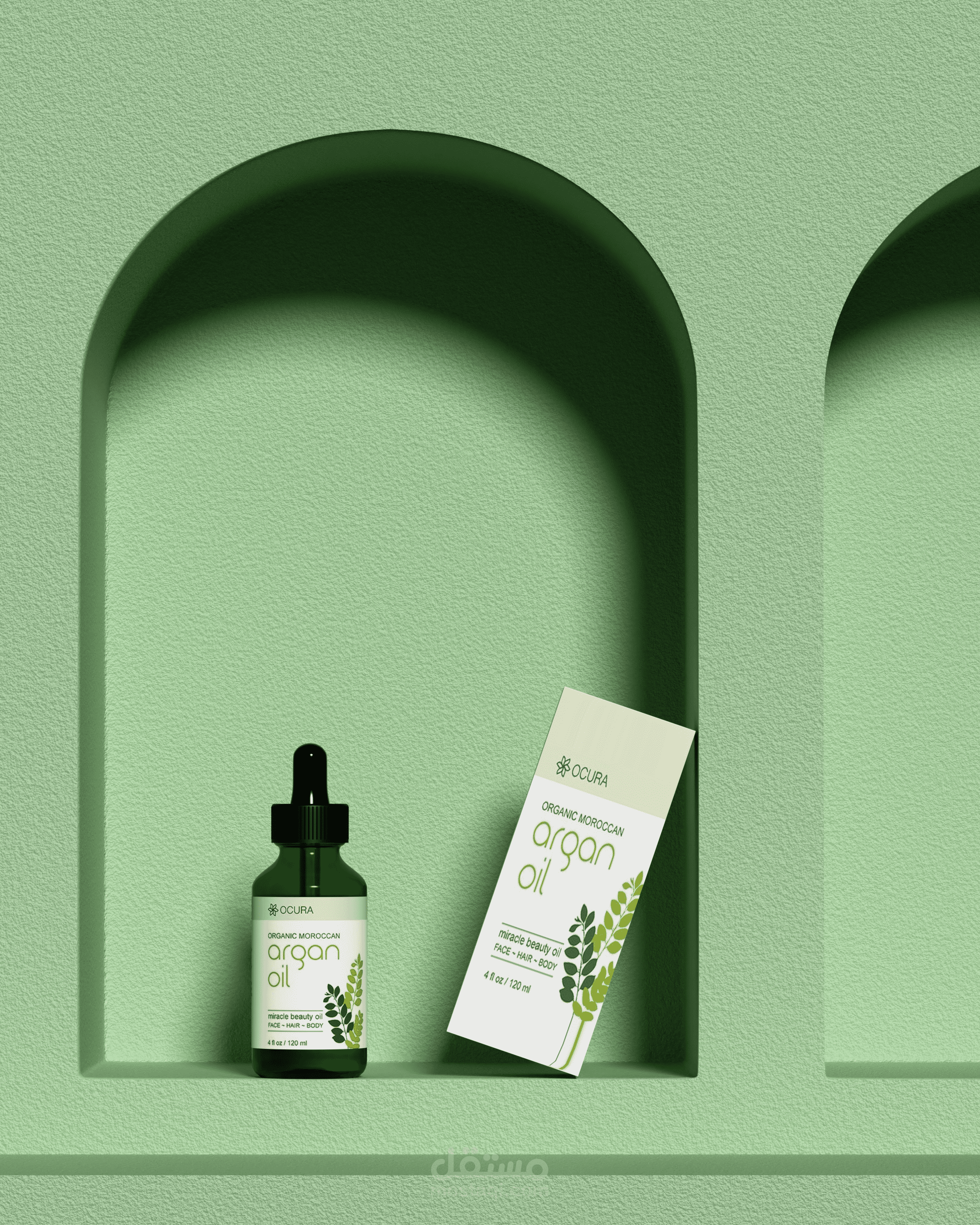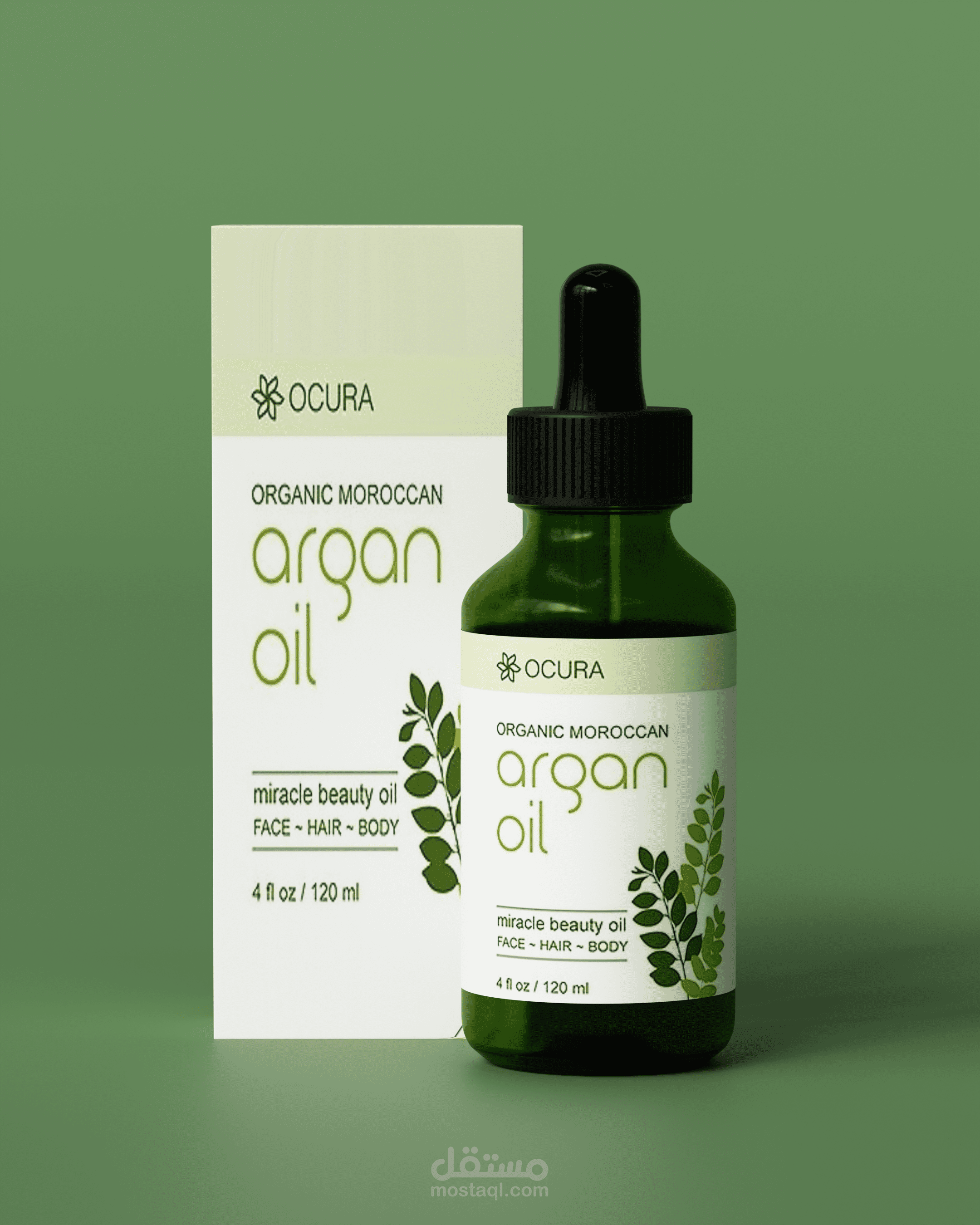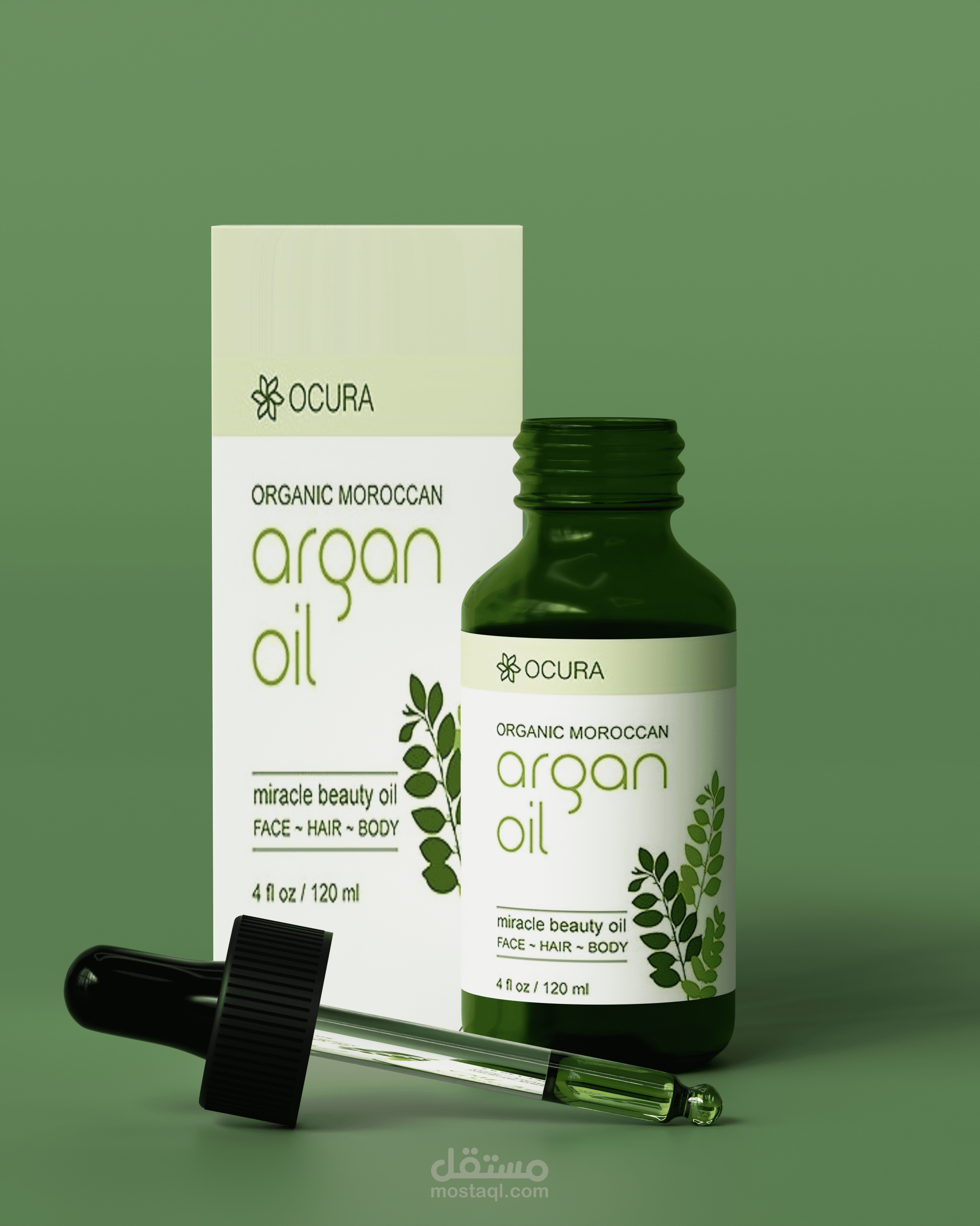 تصميم وعرض ثلاثي الأبعاد (3D Product Visualization) لمنتج زيت الأرجان، يركز على إبراز تفاصيل العبوة والهوية البصرية بطريقة واقعية وجذابة.