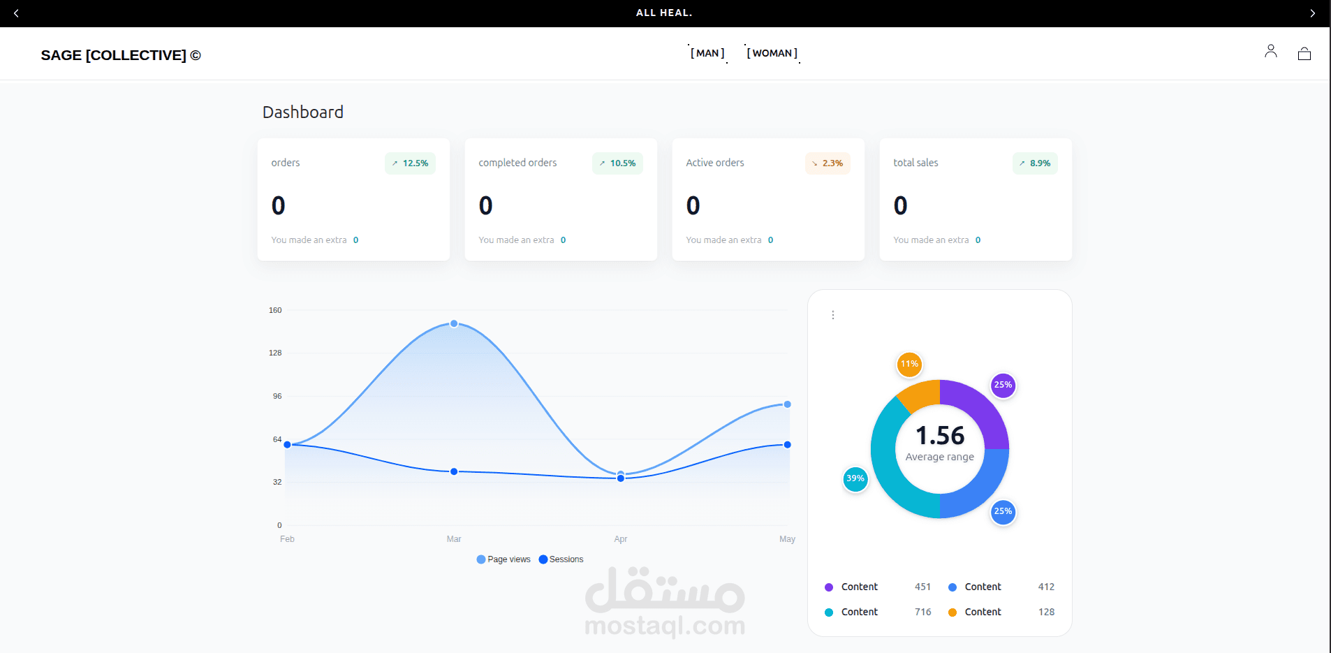 يوفر الموقع أيضًا لوحة تحكم إدارية (Admin Dashboard) تمكن المسؤولين من إدارة المنتجات والمخزون والطلبات والمستخدمين. كما تحتوي لوحة التحكم على أدوات تحليلية (Analytics) لعرض إحصائيات المبيعات، وعدد الطلبات، وأداء المنتجات، مما يساعد الإدارة على متابعة أداء المتجر واتخاذ قرارات مبنية على البيانات.