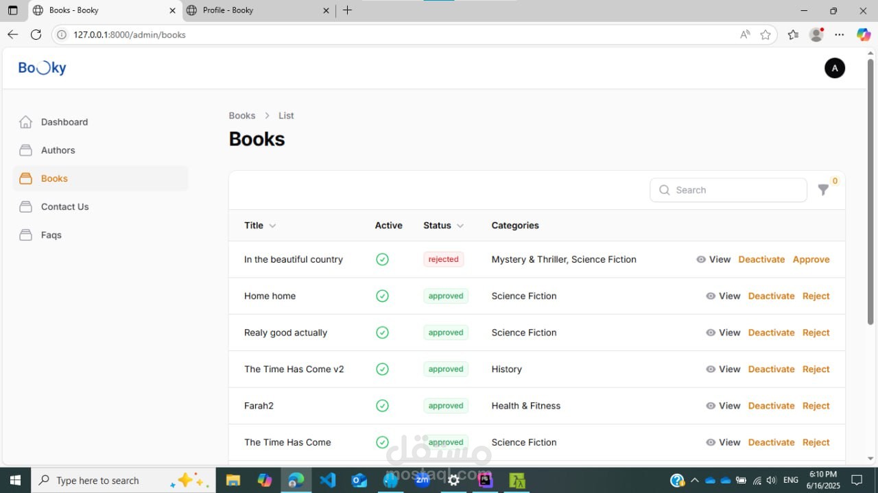 Booky هو نظام متكامل لإدارة وبيع الكتب عبر تطبيق موبايل ومنصة ويب. يهدف المشروع إلى توفير تجربة سهلة للمستخدمين لشراء الكتب وقراءتها، مع توفير أدوات لإدارة المحتوى لكل من المسؤولين والمؤلفين.