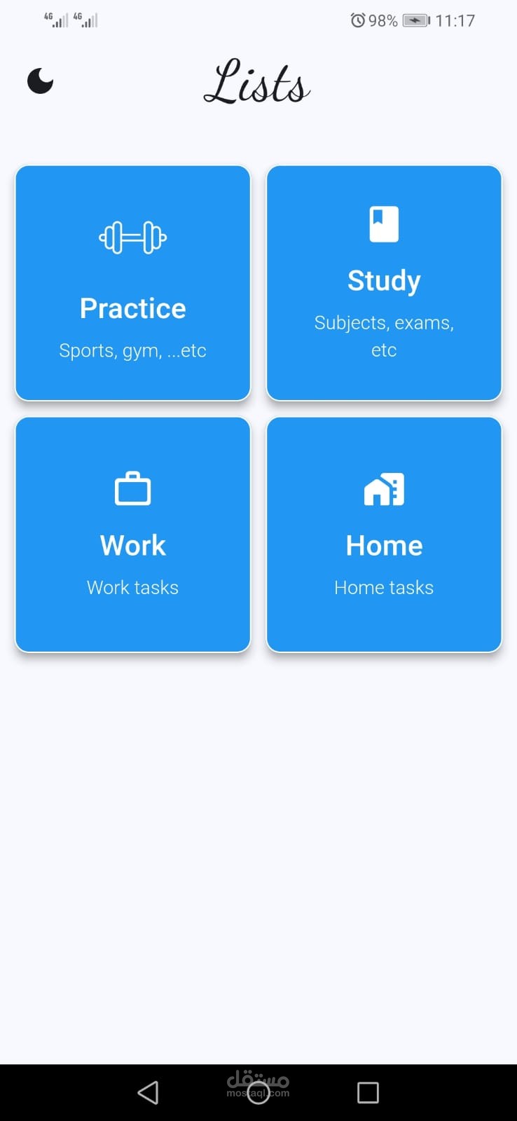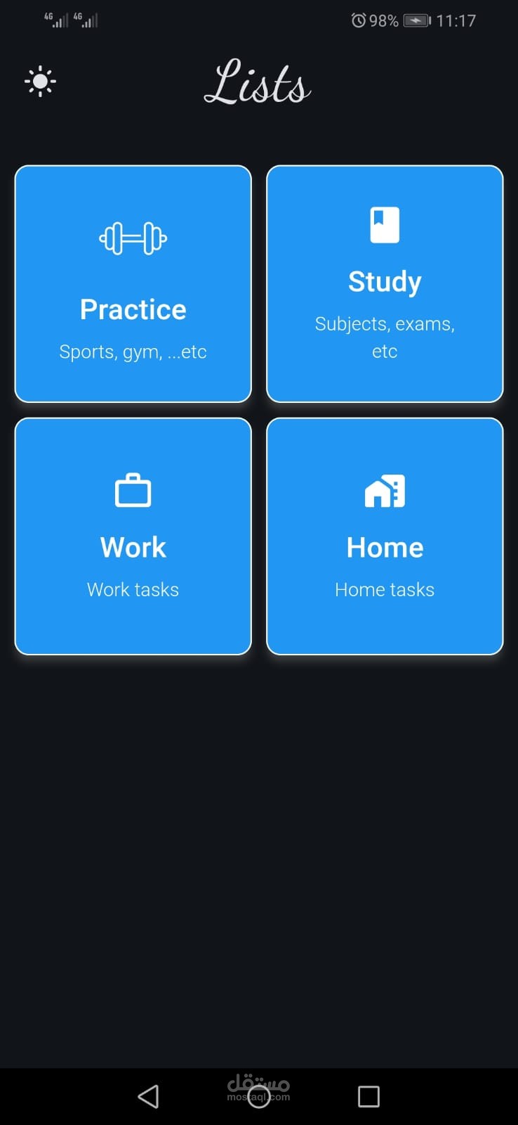 تطبيق بسيط عبارة عن وضع مهام الشخص اليومية و متنوعة بين مهام المنزل و العمل و المهام الرياضية مثل الجري أو ممارسة لعبة ما مثل رفع الأثقال.