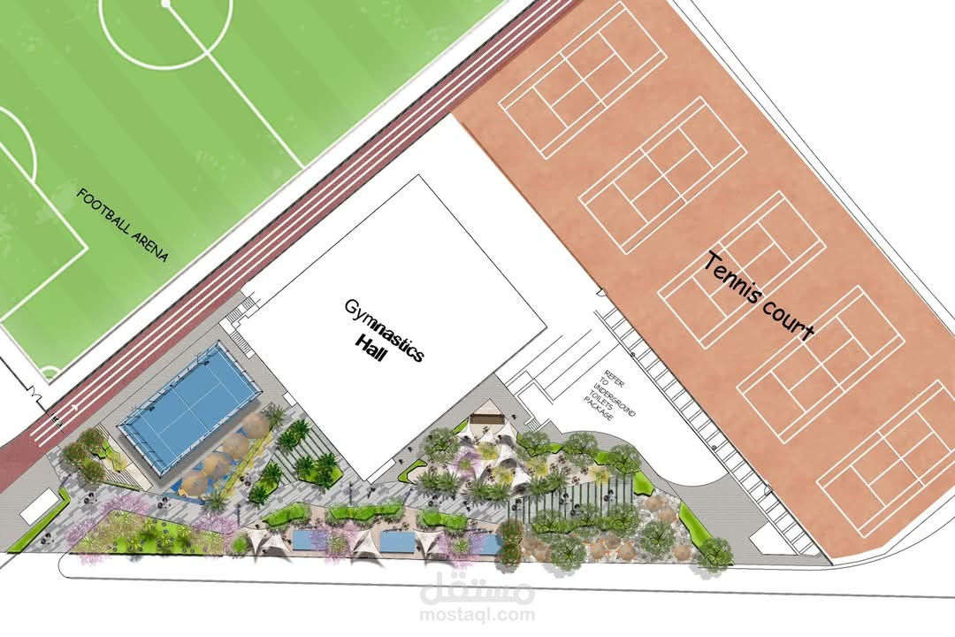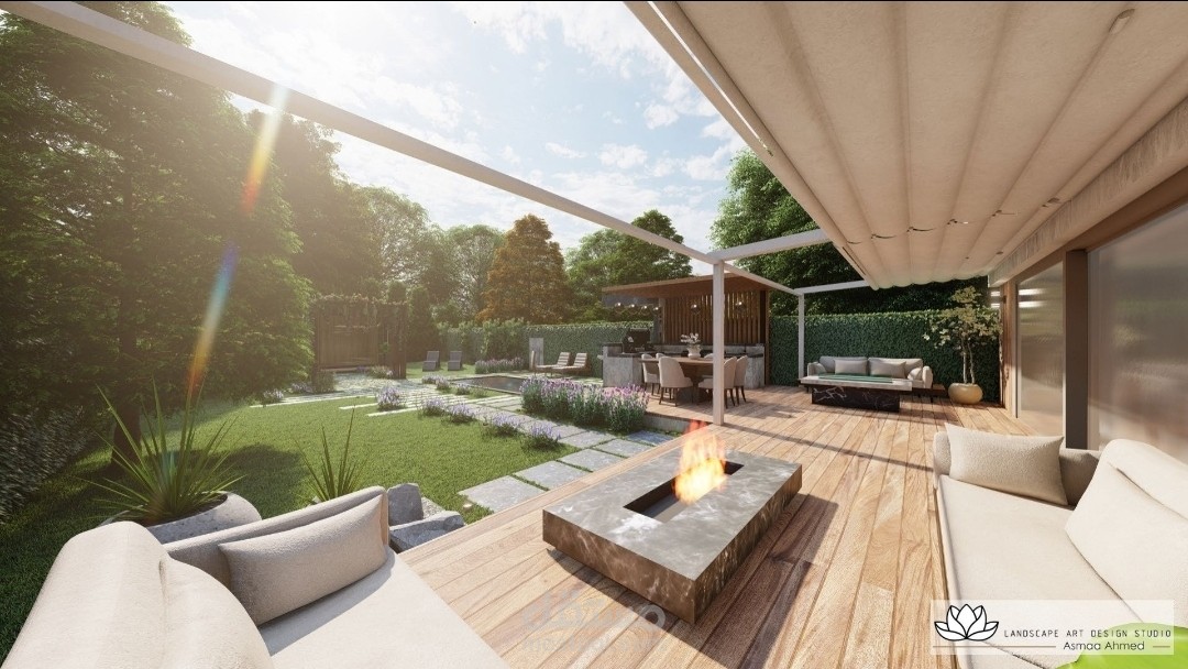 كما يتضمن التصميم دراسة عناصر الإضاءة الخارجية، والخامات المستخدمة في الأرضيات والتشطيبات، بما يضمن تحقيق بيئة خارجية مريحة ومستدامة تعزز من جودة استخدام الفراغ الخارجي وتضيف قيمة جمالية للموقع.
