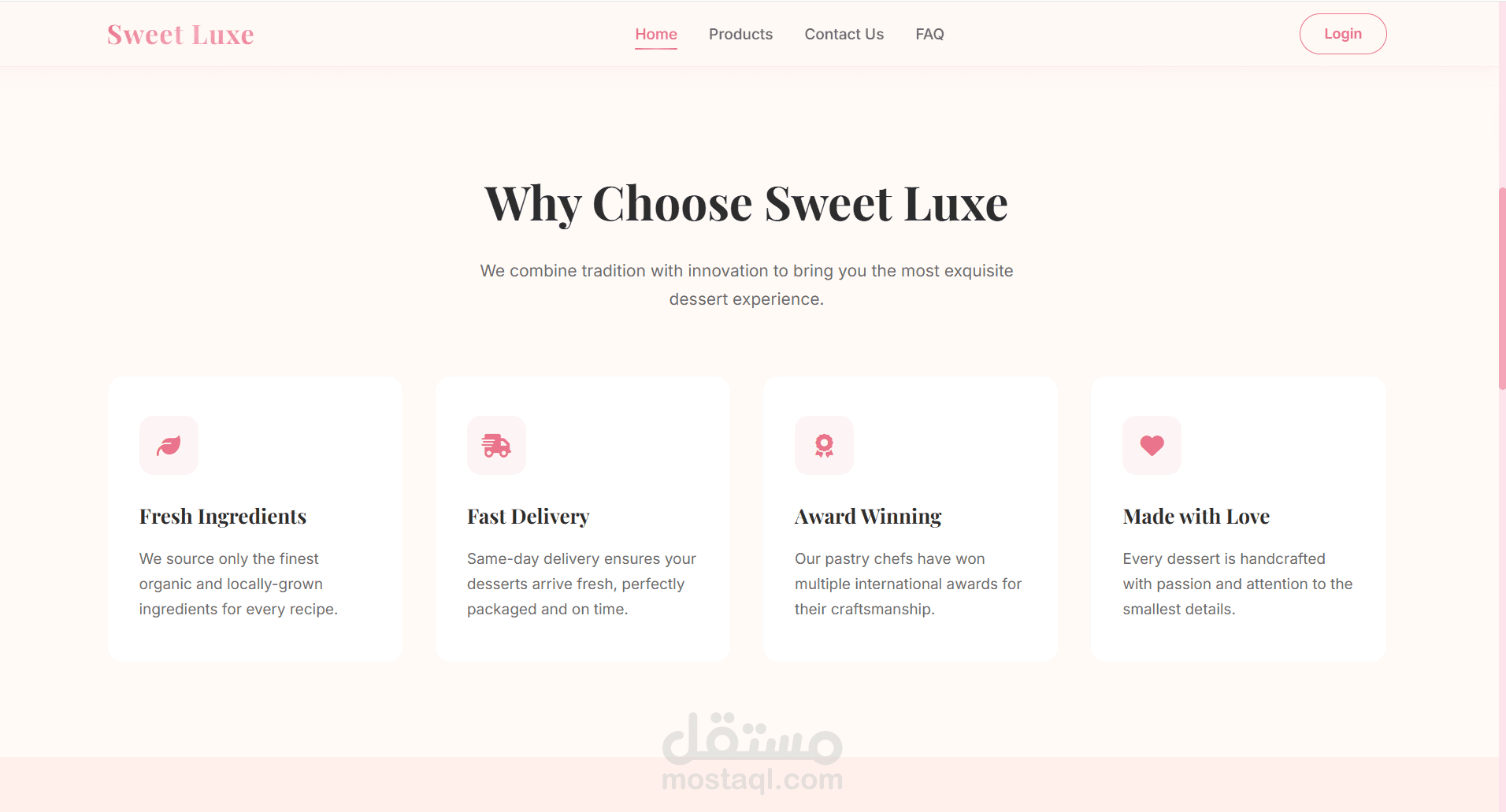 تم تصميم الموقع باستخدام تقنيات Frontend مع التركيز على البساطة وسهولة الاستخدام وتجربة المستخدم الجيدة.