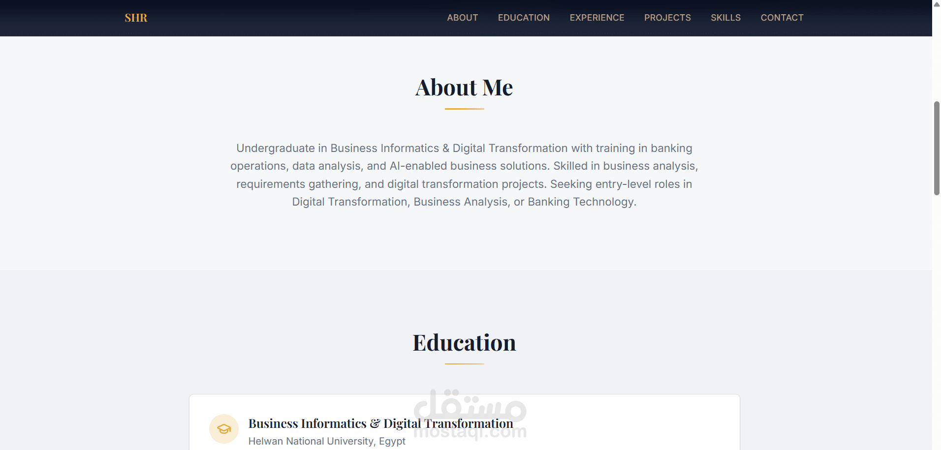 قمت بتصميم وتطوير موقع Portfolio شخصي لعرض الأعمال والمهارات بطريقة احترافية تساعد صاحب الموقع على تقديم نفسه بشكل مميز للعملاء أو جهات التوظيف.