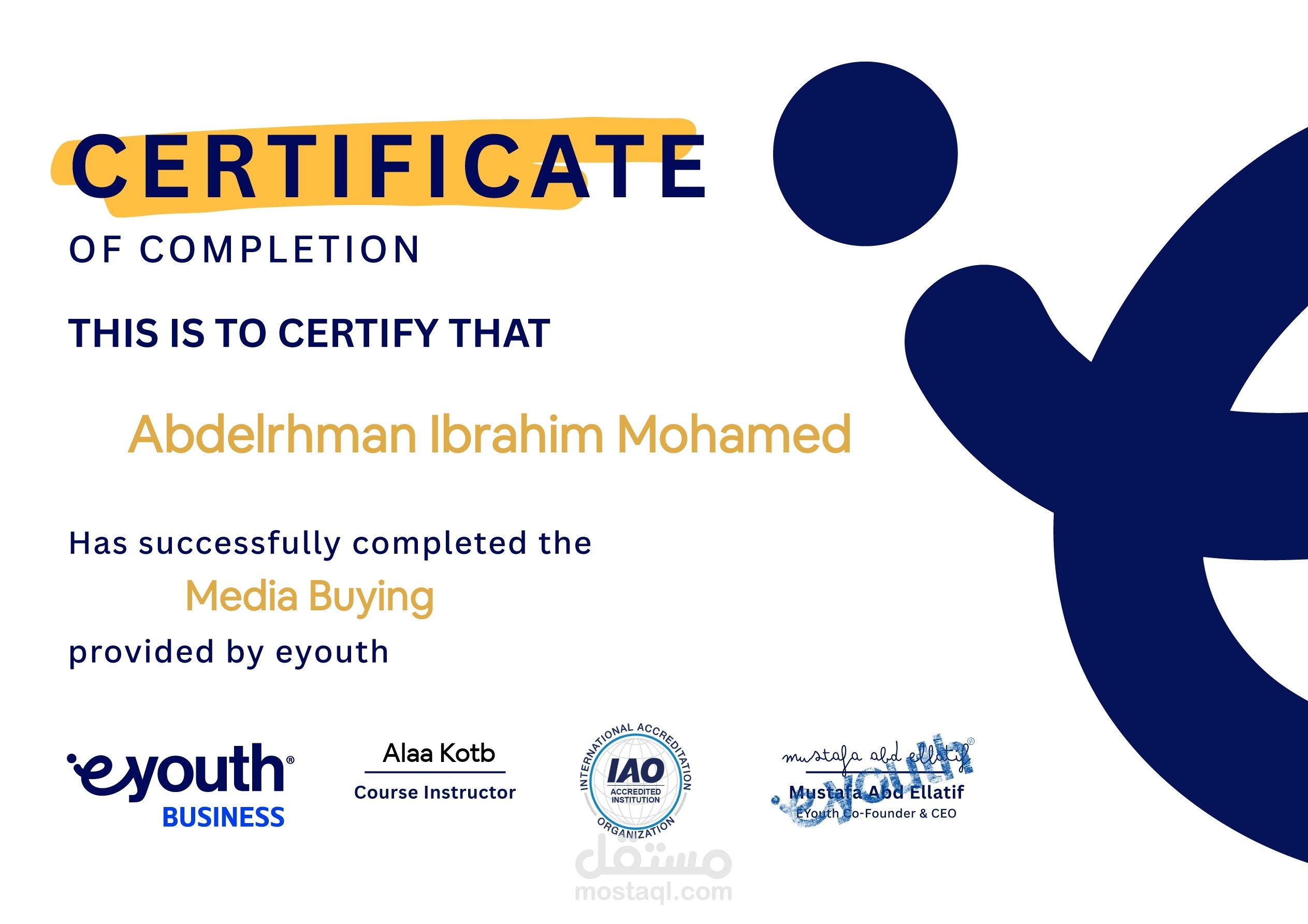 - شهادة الميديا باينج (Media Buying) – من EYouth