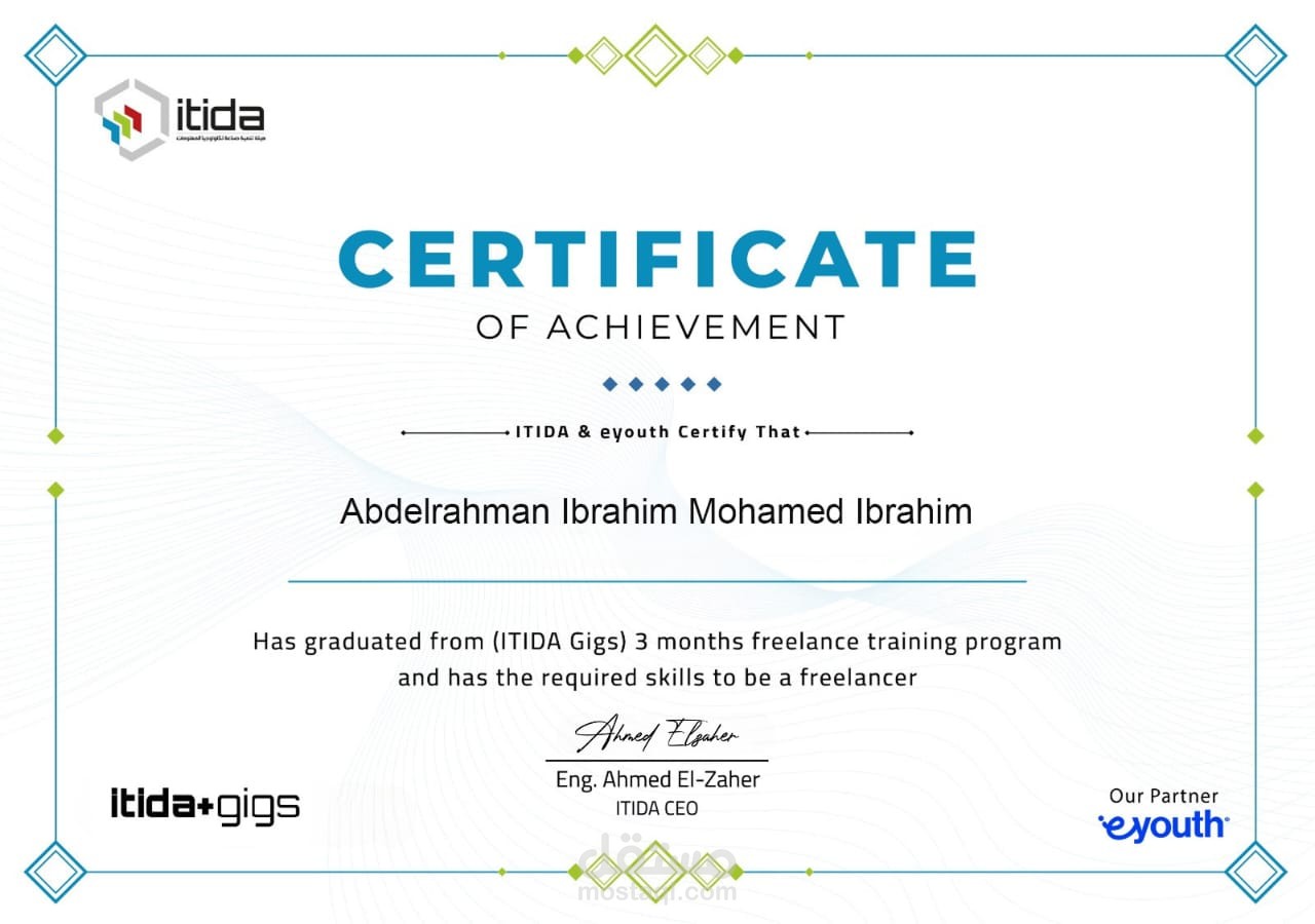 - شهادة العمل الحر (Freelancing) – من ITIDA و EYouth