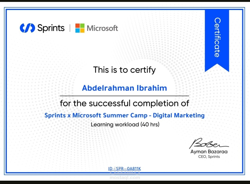 - شهادة التسويق الرقمي (Digital Marketing) – من Sprints و Microsoft