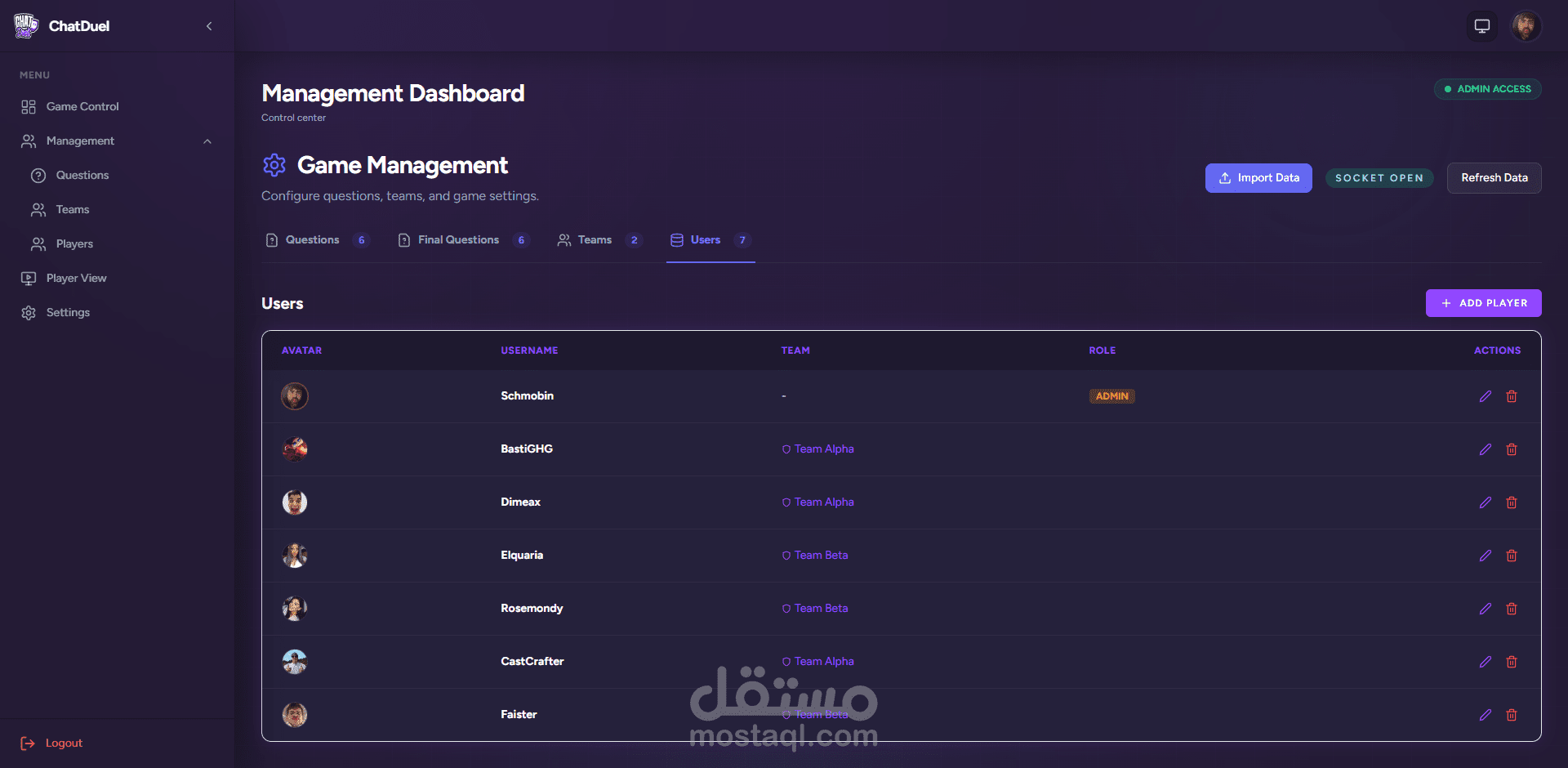 A live multiplayer quiz platform with synchronized buzzer interactions and real-time score progression. Administrators control teams, question banks, and round flow through a dedicated operations interface.