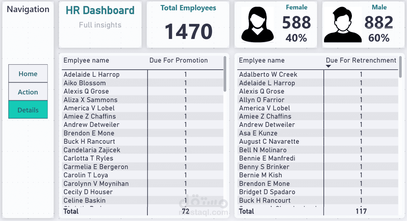 ✔ Detailed table of employees Due for Retrenchment