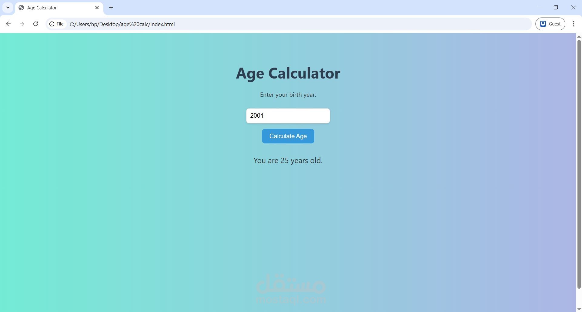 أنشأت صفحة ويب باستخدام HTML - CSS - Java Script تقوم بحساب عمرك عن طريق كتابة سنة ميلادك
