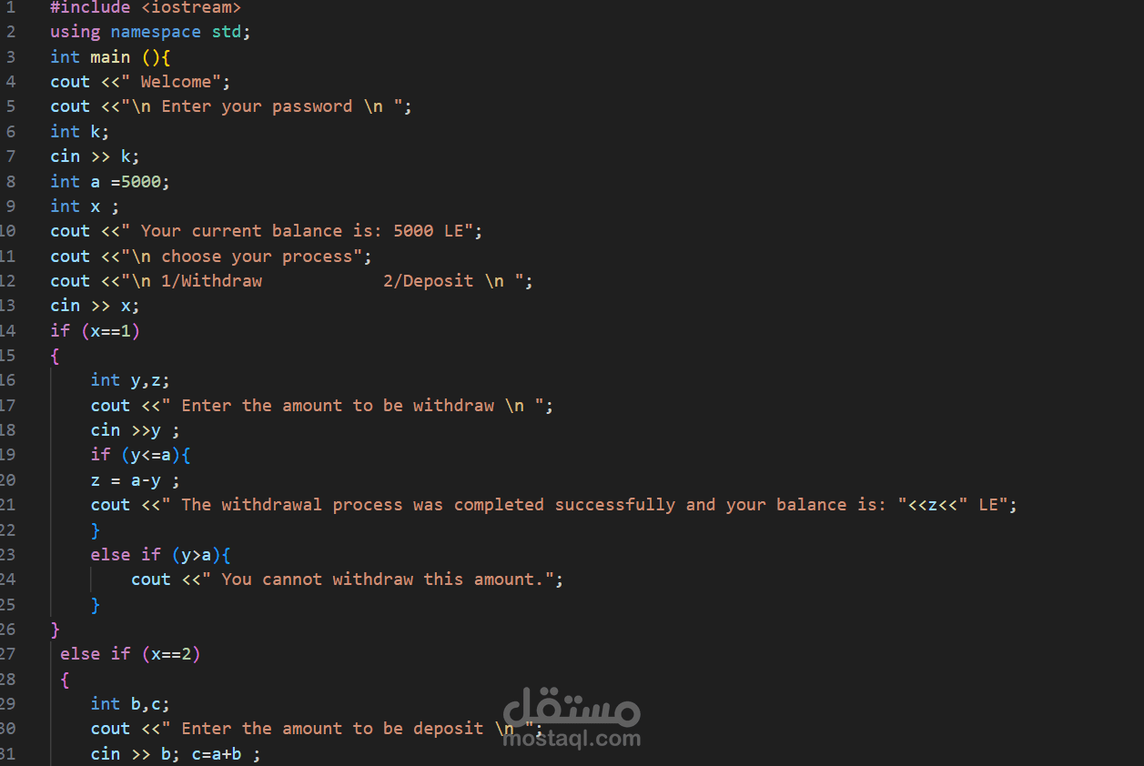 This project is a simple ATM system simulation developed using C++. The program demonstrates basic programming concepts such as user input, conditional statements, and arithmetic operations.