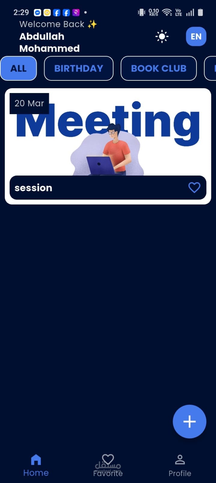 يمكن للمستخدم إضافة المهام اليومية وتعديلها أو حذفها، ويتم تخزين جميع البيانات في Cloud Firestore مع دعم المزامنة في الوقت الفعلي، مما يسمح بالوصول إلى المهام من أي جهاز.