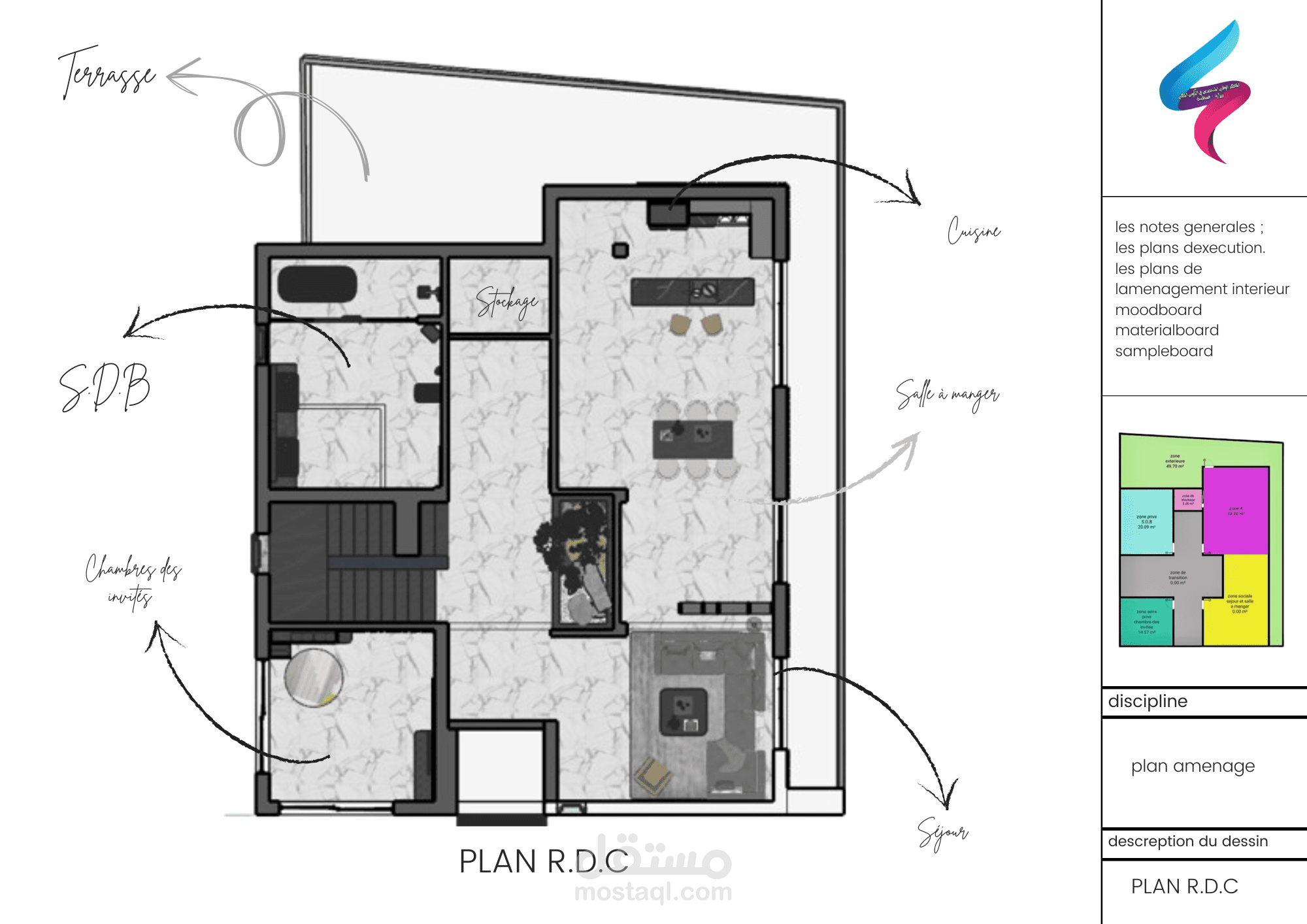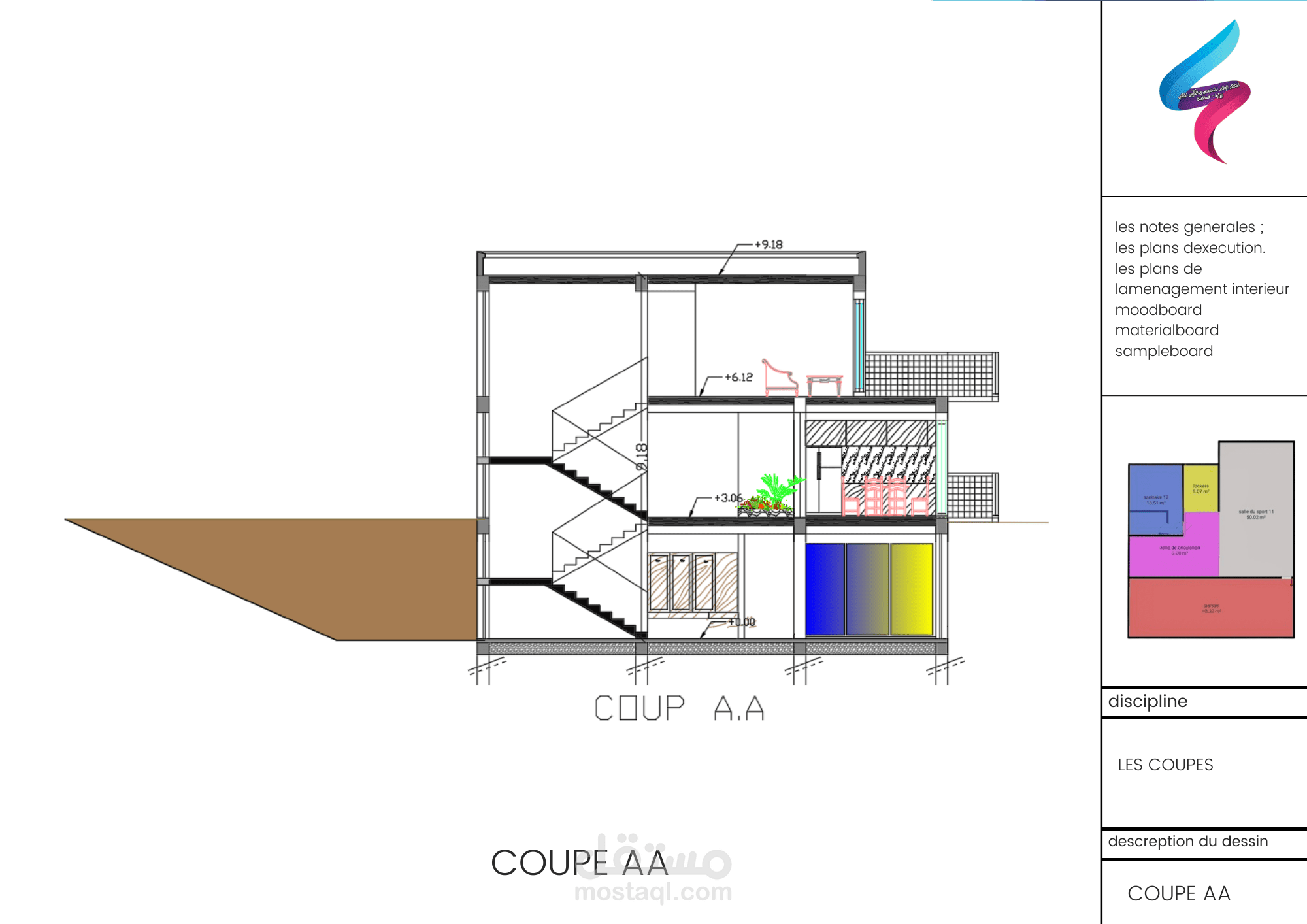 A mountain villa on uneven land in the high mountains of Algeria. The project was studied and completed, but construction has not yet begun.