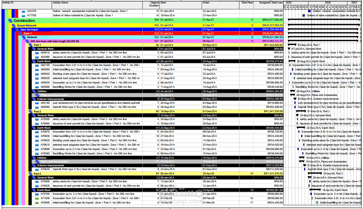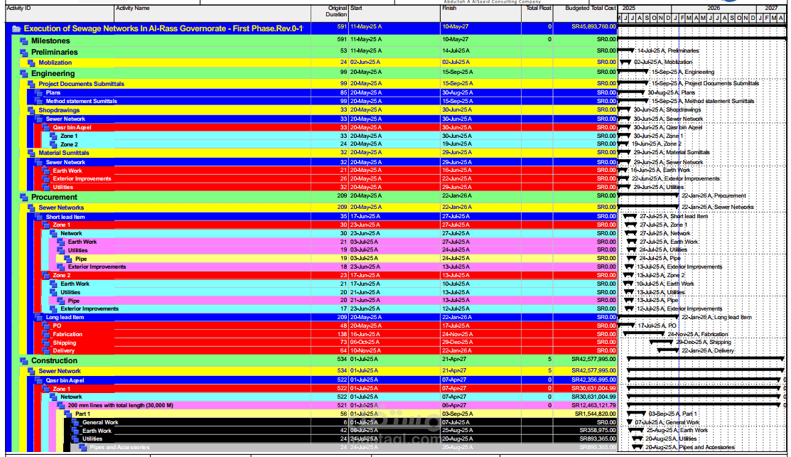 Baseline Schedule Development: Created a fully detailed CPM schedule using Primavera P6, breaking down the scope into zones and streets based on approved construction drawings