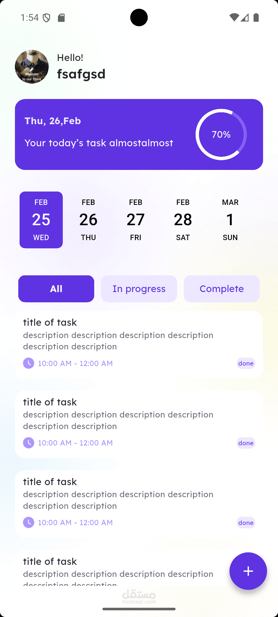 Taskati هو تطبيق لإدارة وتنظيم المهام اليومية يساعد المستخدمين على متابعة أعمالهم وتحسين إنتاجيتهم. يتيح التطبيق إضافة المهام، تعديلها، تحديد أولوياتها، ووضع تذكيرات لضمان إنجازها في الوقت المناسب. يتميز التطبيق بواجهة بسيطة وسهلة الاستخدام تساعد المستخدمين على تنظيم مهامهم اليومية بطريقة واضحة وفعّالة.