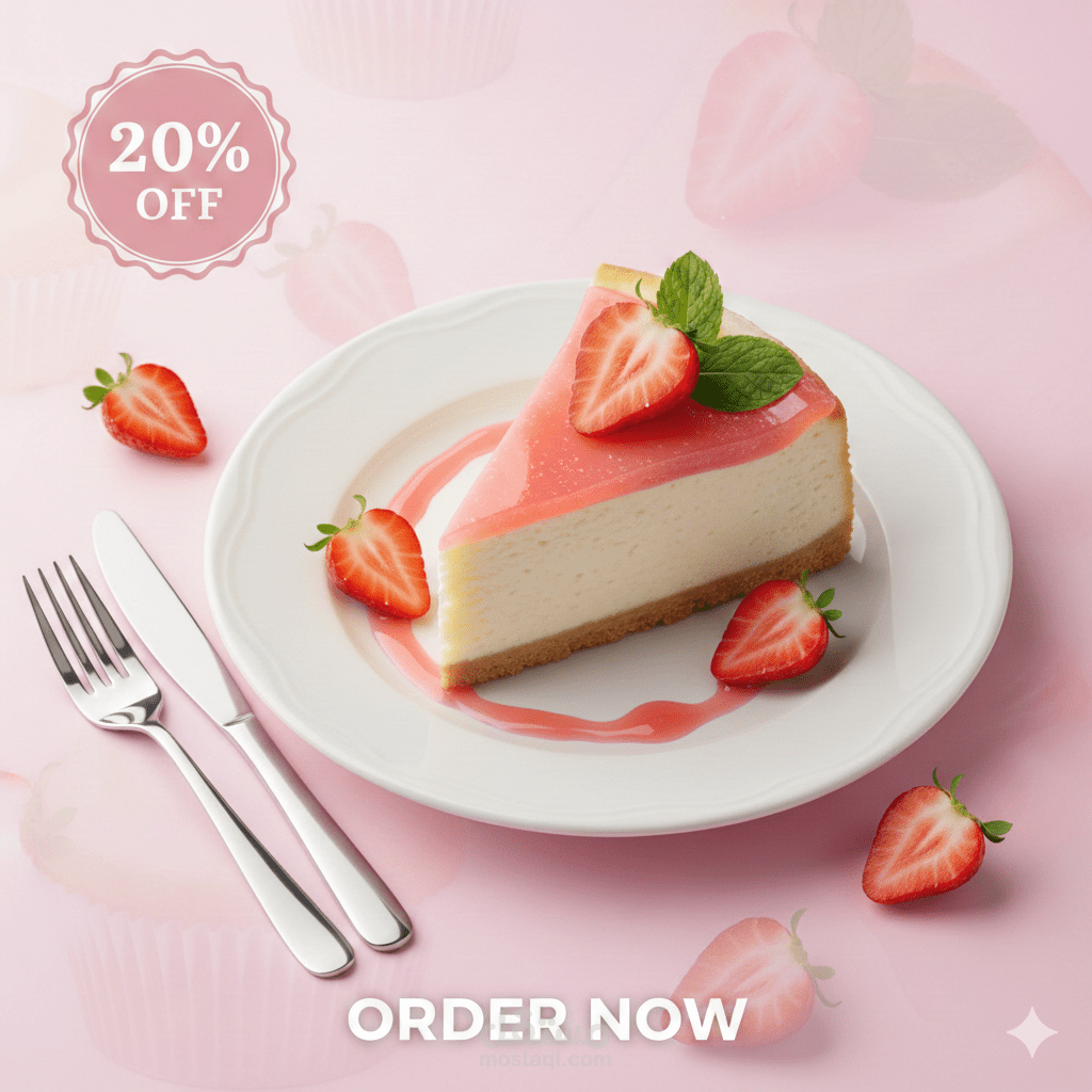 اعلان التشيز كيك فيه صور و فيديوهات لتوضيح شكل الكيك من كل الاتجاهات