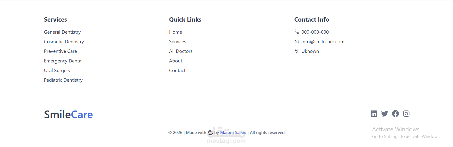 يجمع المشروع بين نظام إداري متكامل للموظفين وتطبيق ويب مخصص للمرضى، مما يوفّر حلاً عمليًا لإدارة العيادات السنية مع قابلية التوسع لإضافة ميزات أمنية متقدمة مثل المصادقة باستخدام JWT ونظام الأدوار والصلاحيات في المستقبل.