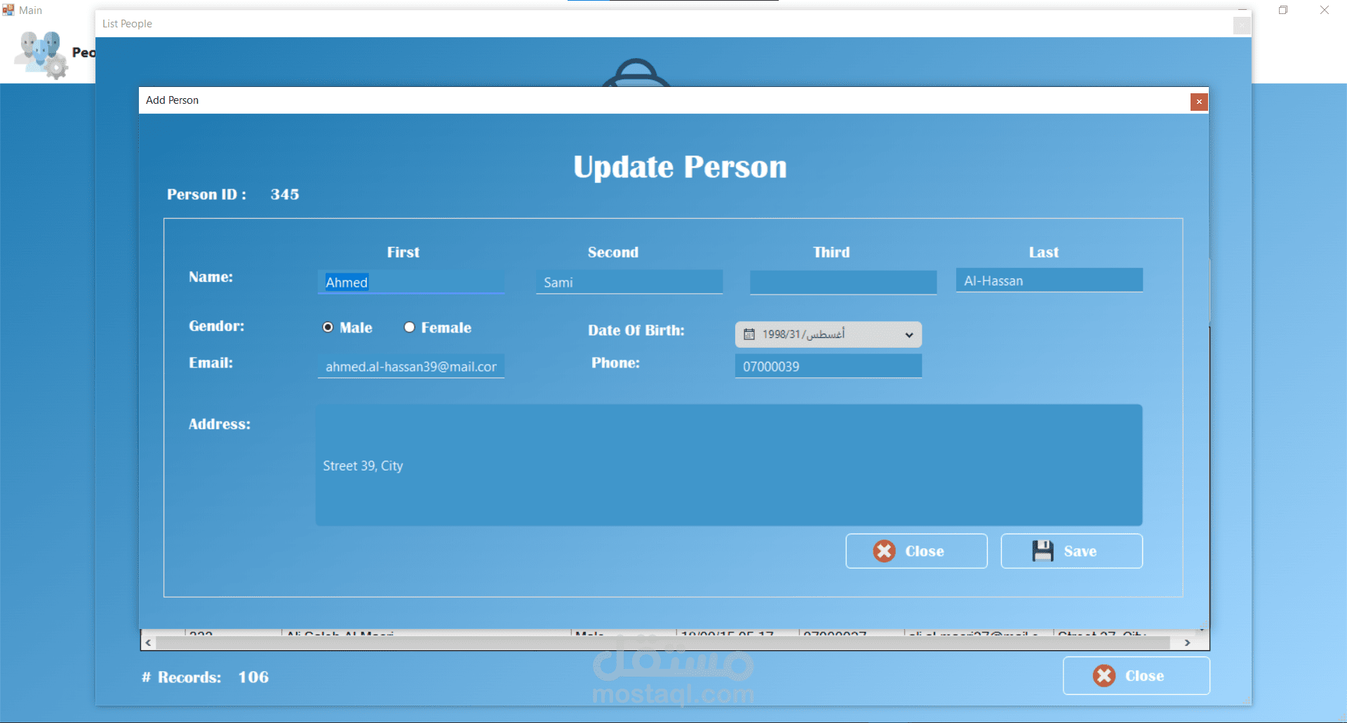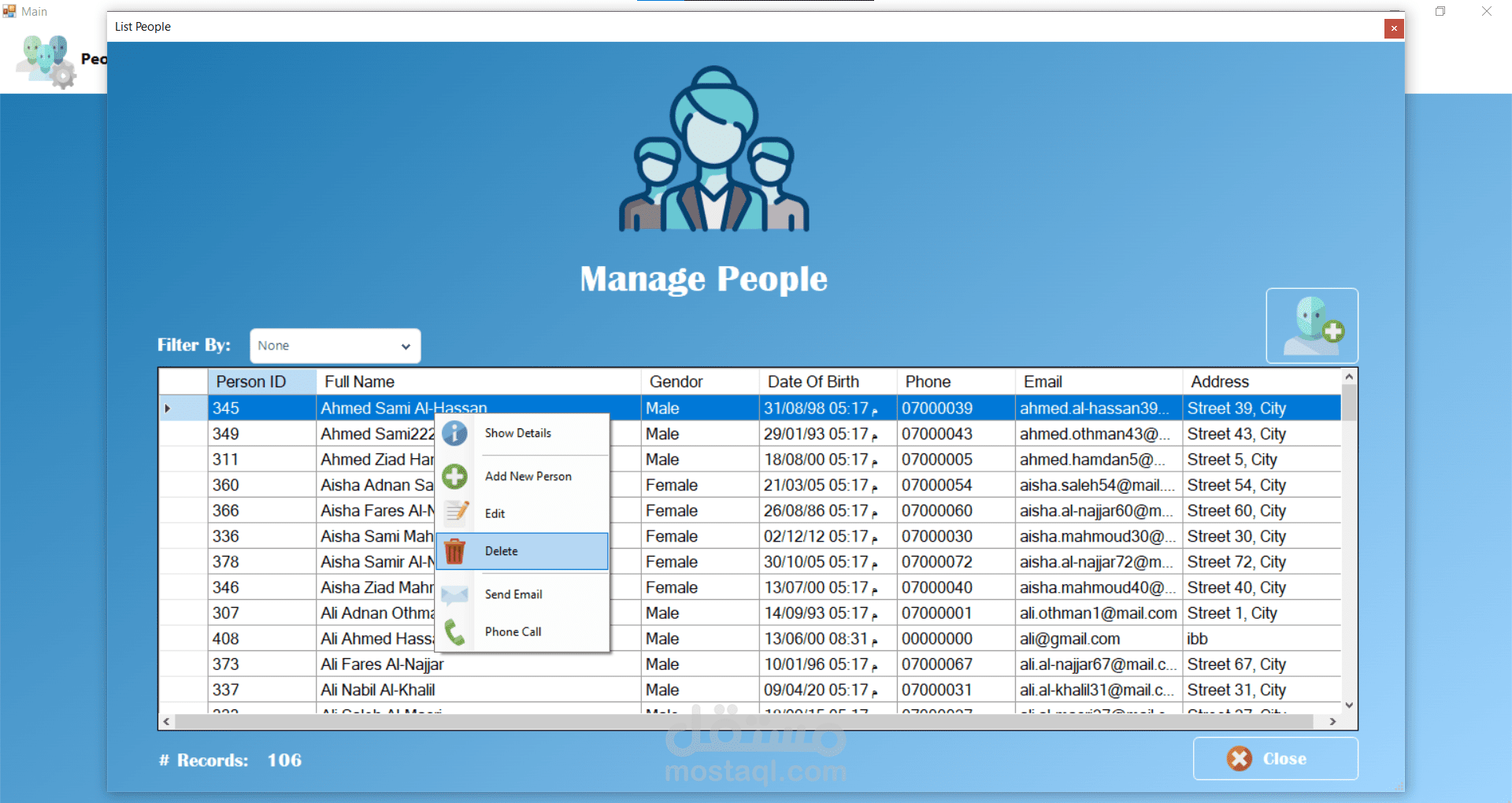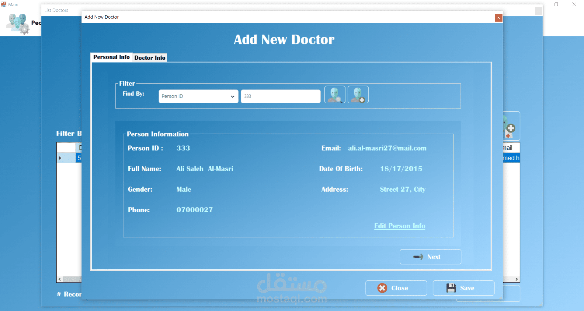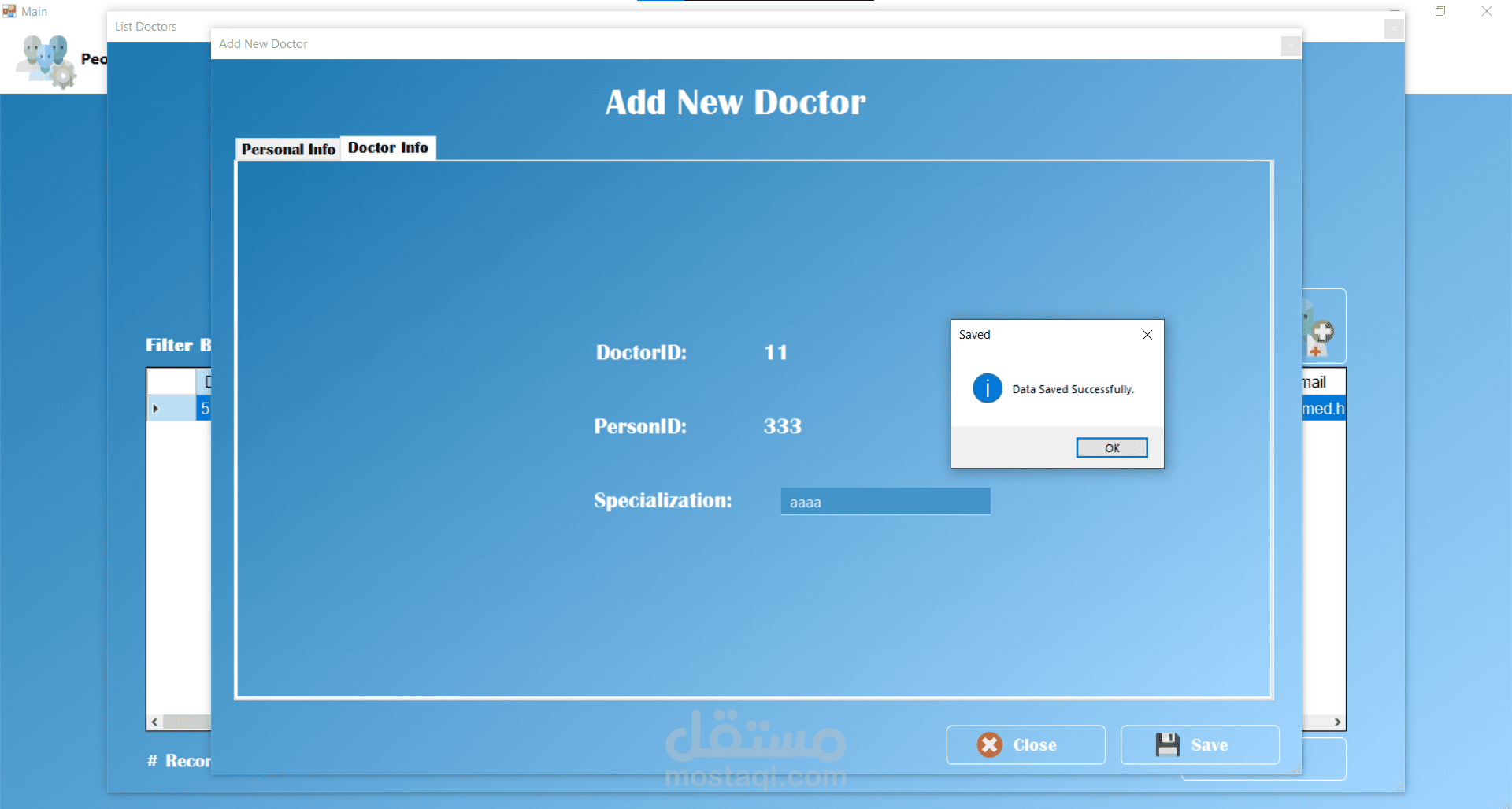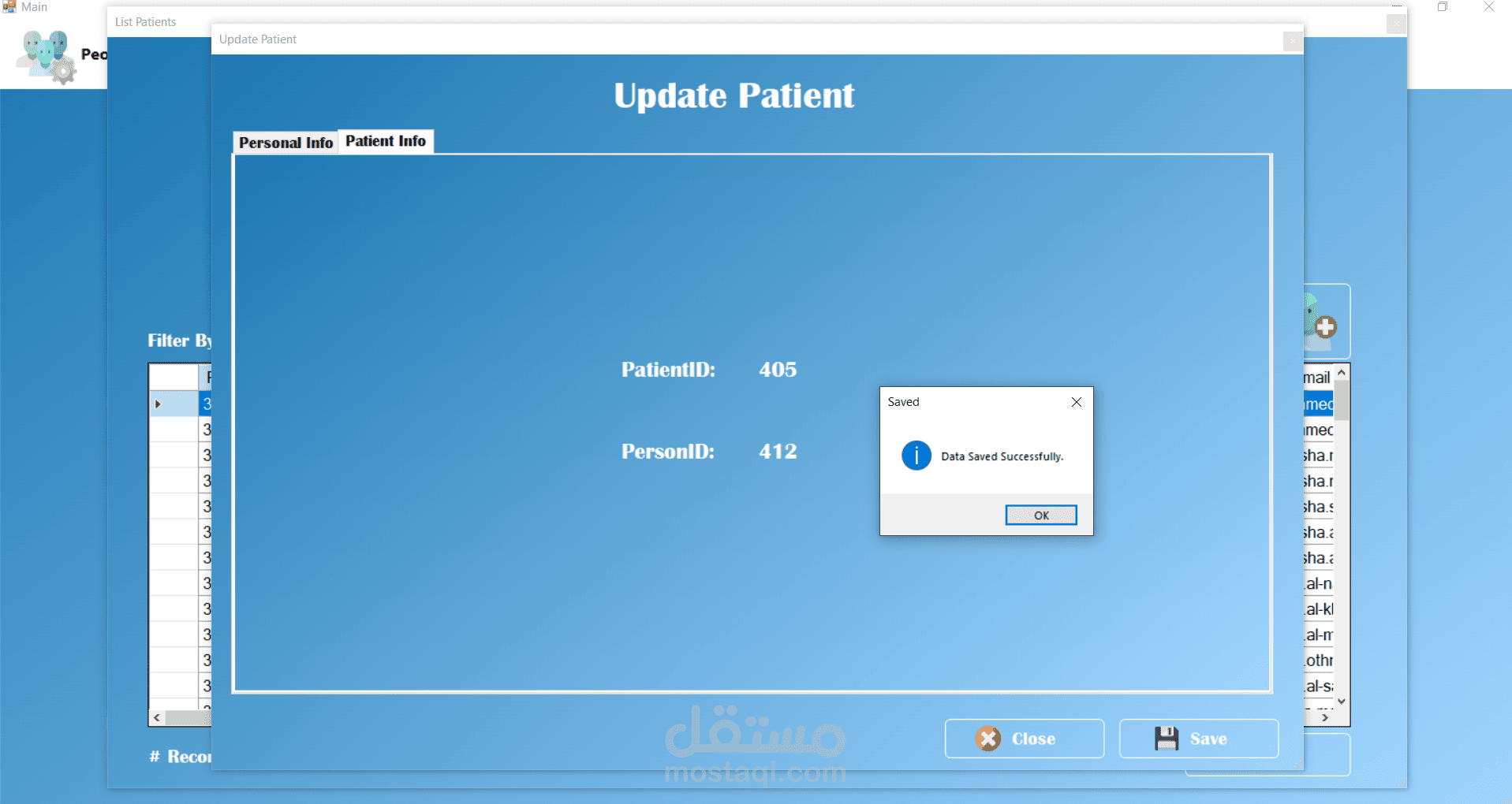 من الناحية التقنية تم تصميم قاعدة البيانات باستخدام Microsoft SQL Server مع اعتماد مبدأ التعميم (Generalization) عبر جدول People الذي يُستخدم كأساس لتمثيل المرضى والأطباء والمستخدمين. وفي موقع الويب تم استخدام معاملات Transaction لضمان تكامل البيانات عند تسجيل المريض الجديد، حيث يتم إدخال البيانات في جدول الأشخاص ثم إنشاء سجل المريض المرتبط بنفس المعرف داخل عملية واحدة تضمن تنفيذ جميع الخطوات أو التراجع عنها بالكامل في حال حدوث خطأ.