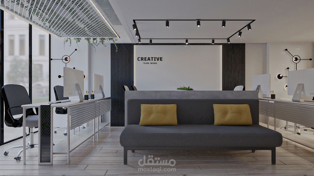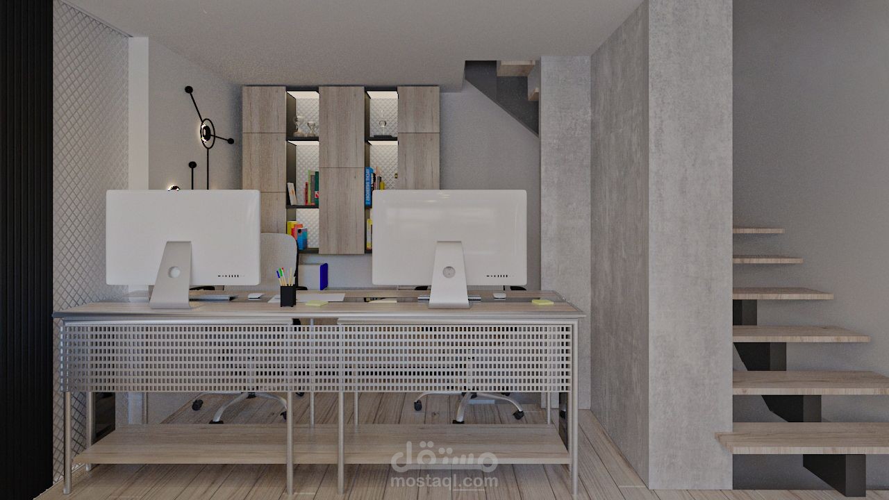 The office is designed on two levels.