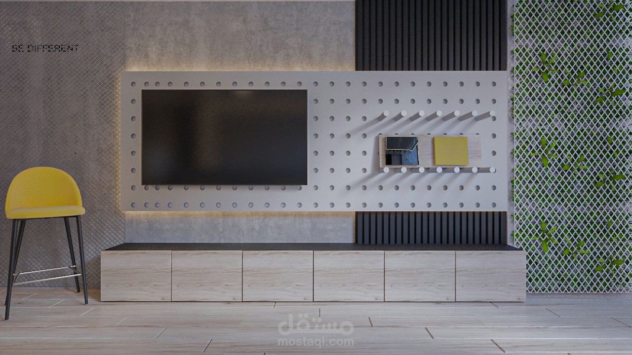 The first floor includes workstations for employees and a presentation area with a screen used to present and explain design concepts to clients. The second floor features a dedicated meeting room for discussions and project planning.