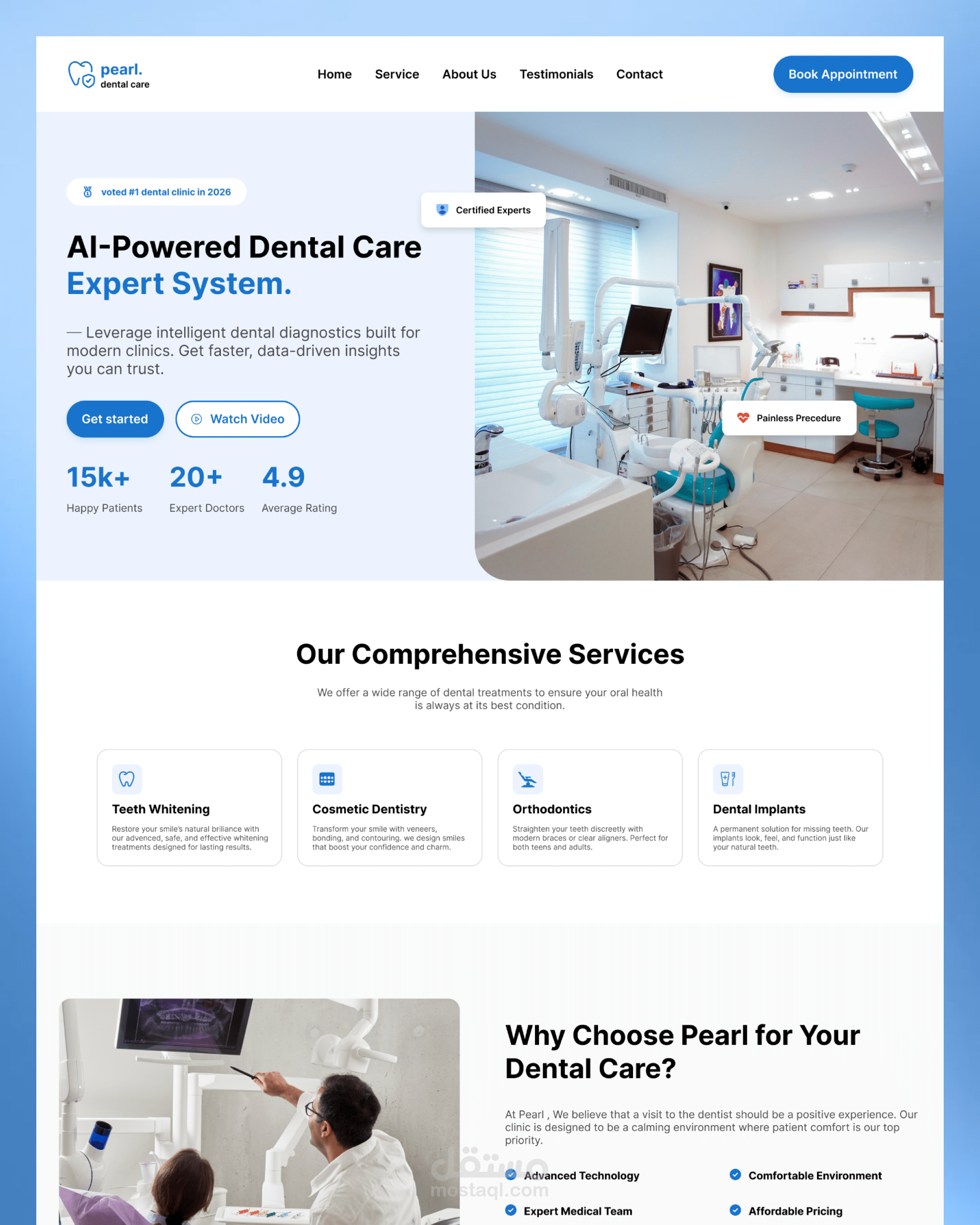 Pearl Dental Care is a modern dental clinic dedicated to providing high-quality dental treatments in a comfortable and welcoming environment. The goal of this project was to design a clean, professional landing page that builds trust with potential patients while making it easy for them to learn about services and book appointments.