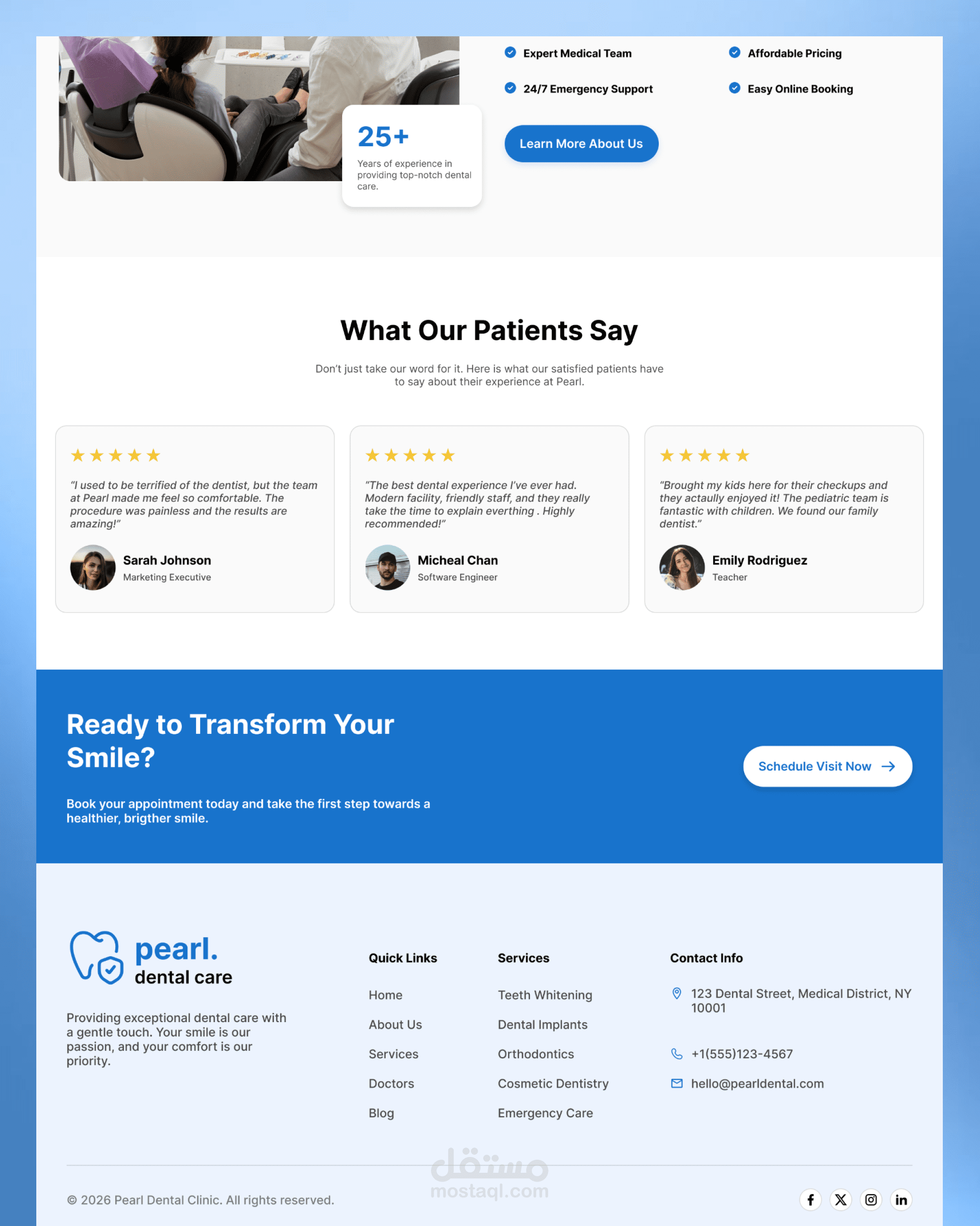 The result is a conversion-focused dental landing page that combines trust, clarity, and accessibility—helping Pearl Dental Care attract new patients while providing a seamless and reassuring online experience. ?✨