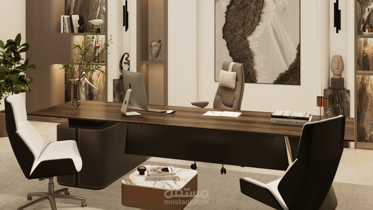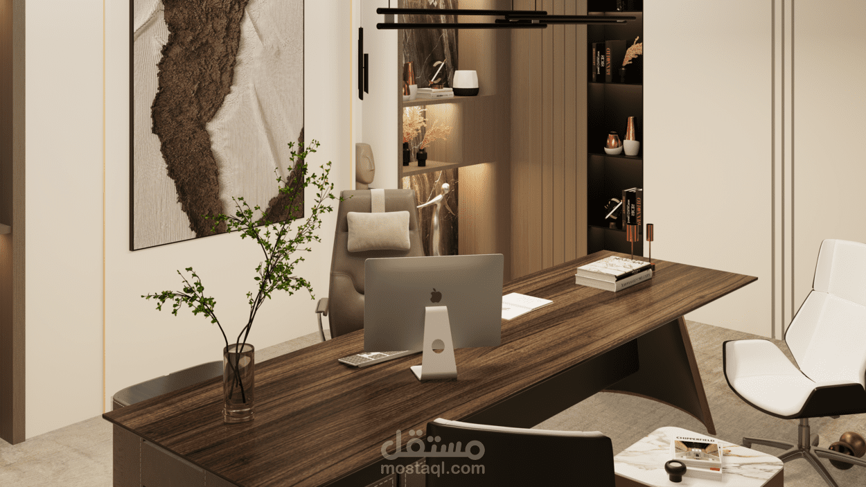 تصميم مكتب CEO بأسلوب Modern مع التركيز علي البساطة، مع استخدام خامات هادئة و اضاءة تعزز بيئة العمل الاحترافية. تم تنفيذ المشروع باستخدام 3ds Max و Vray Renderer.