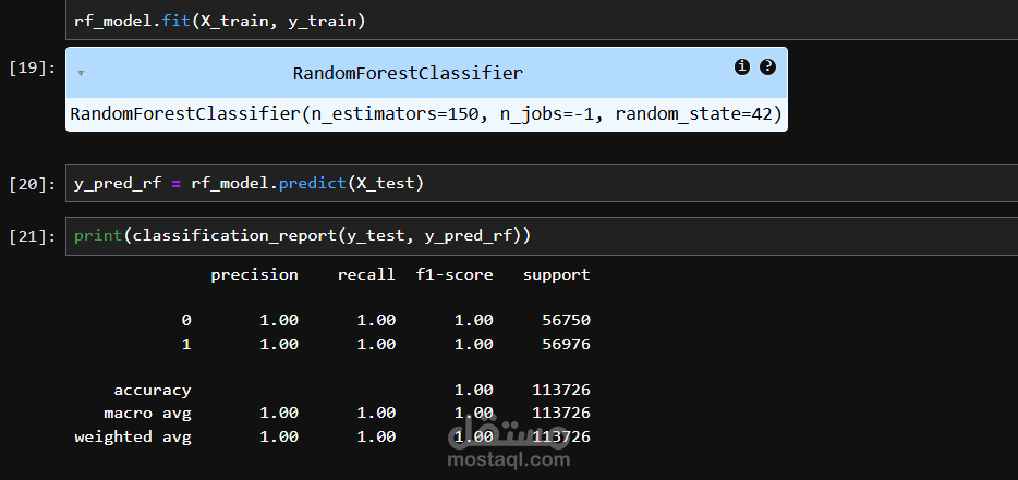 Each model was trained and evaluated using appropriate metrics to measure performance in detecting fraudulent transactions. Among the tested models, Random Forest achieved the best performance due to its ability to capture complex nonlinear relationships within the dataset.