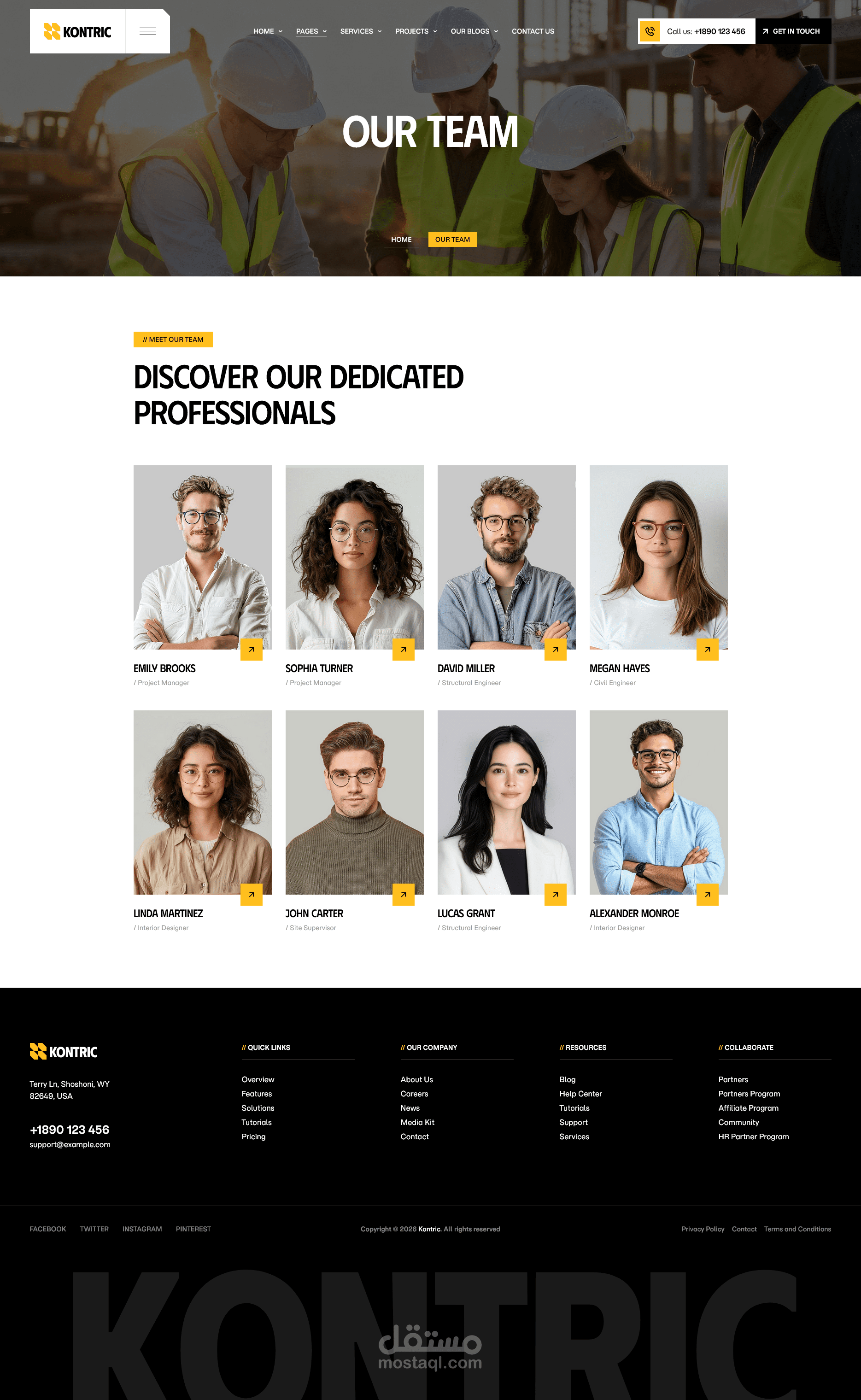 التناسق البصري: استخدام صور عالية الجودة متوافقة مع روح العمل الميداني والإنشائي.