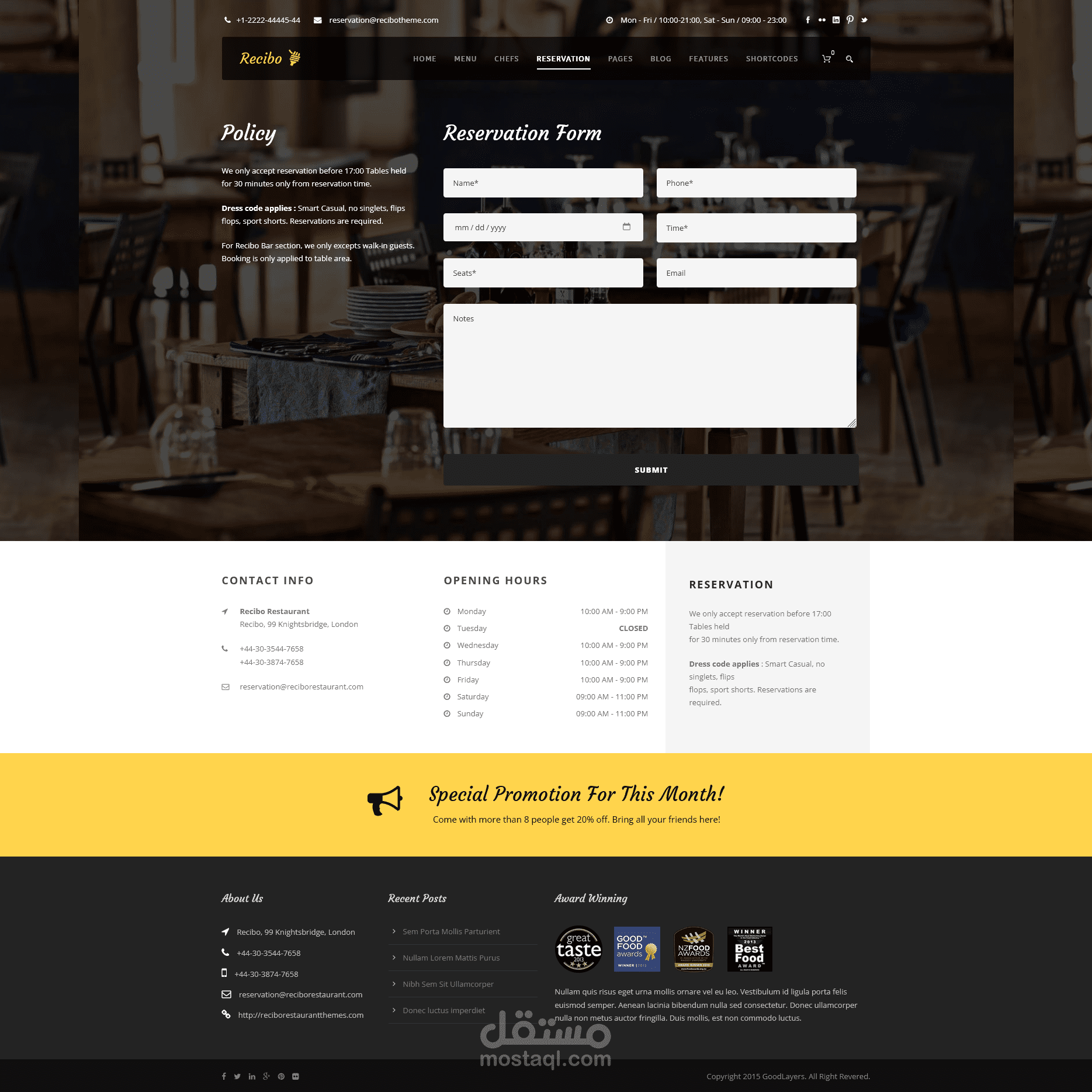 تصميم واجهة مستخدم )UI) لمطعم فاخر بتجربة مستخدم كلاسيكية - Recibo: