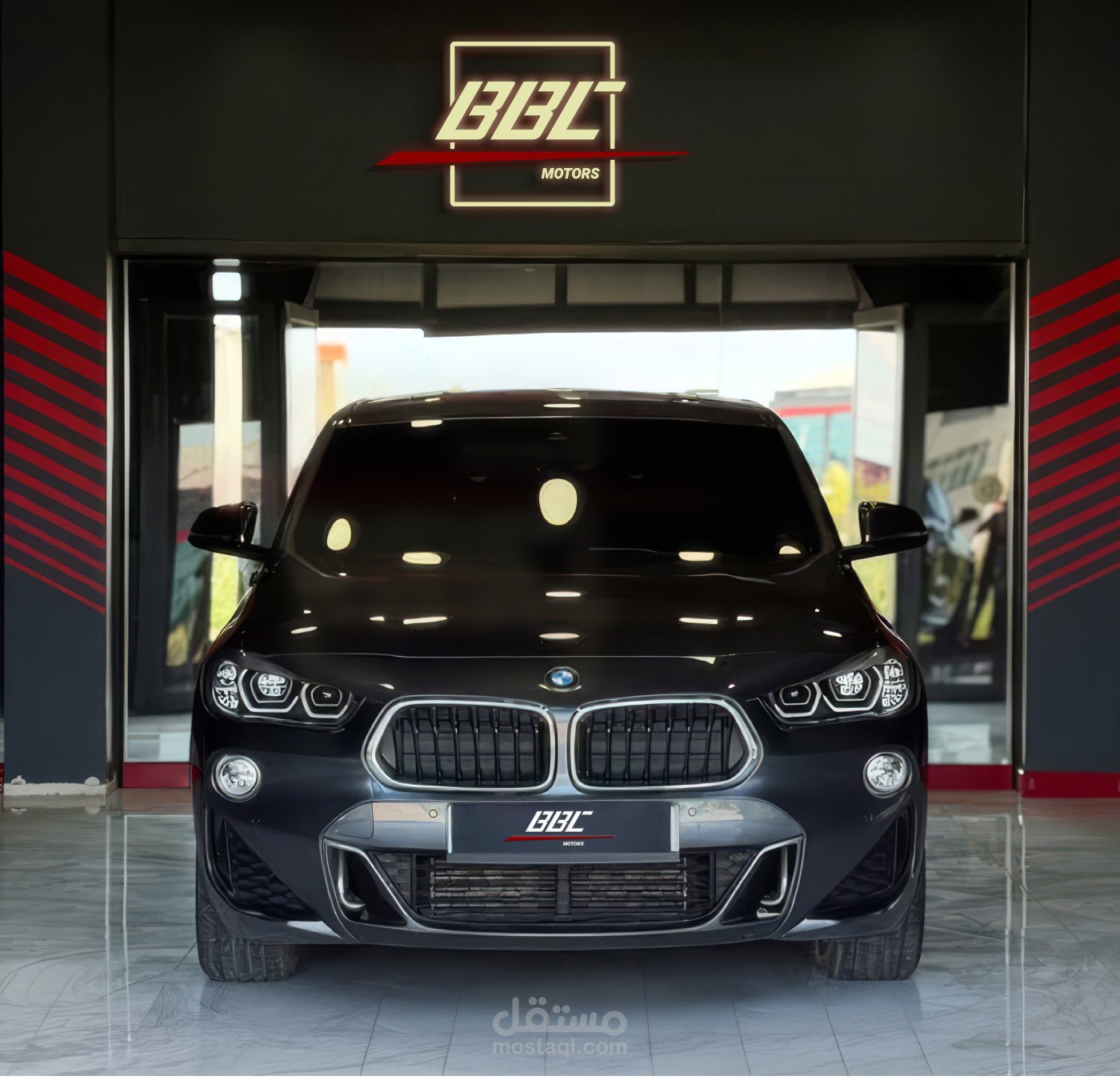 الهندسة التجريدية : يعتمد رمز "BBC" على خطوط هيكلية حادة تحاكي الدقة التقنية الموجودة في محركات السيارات عالية الأداء.