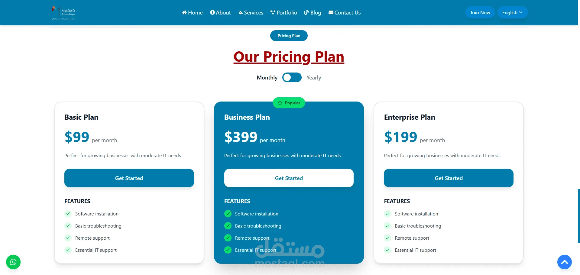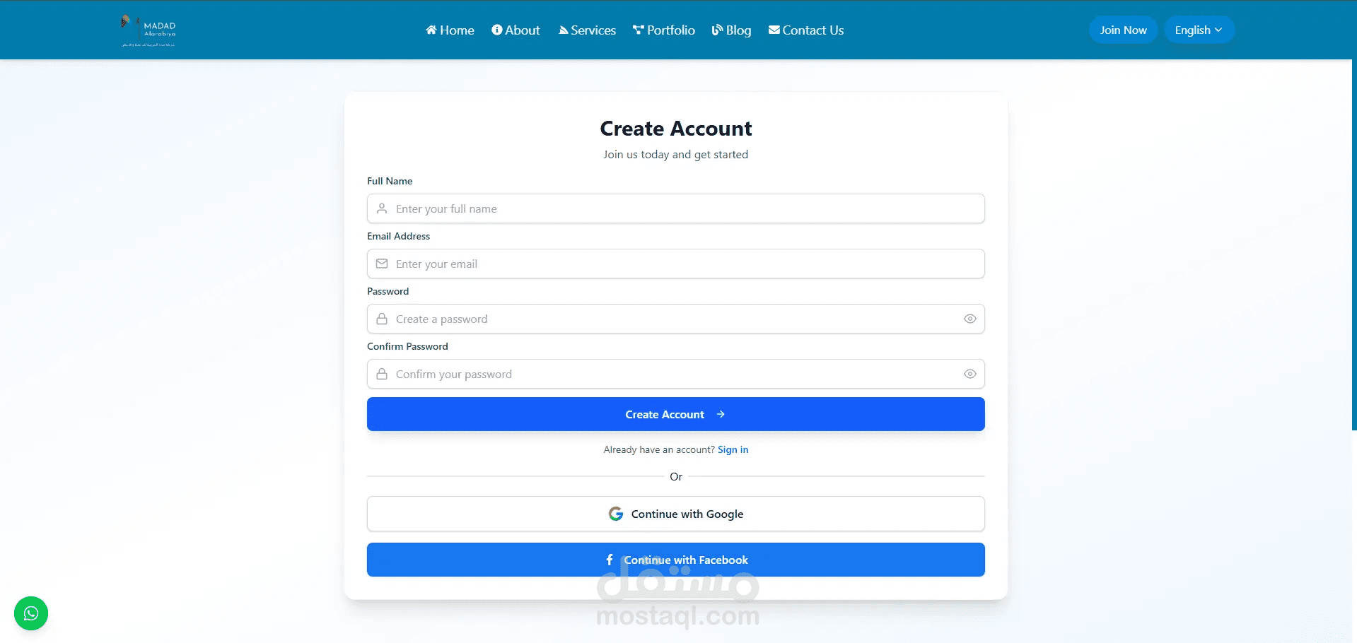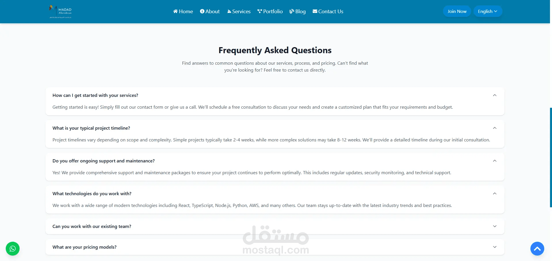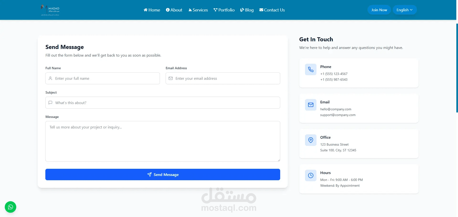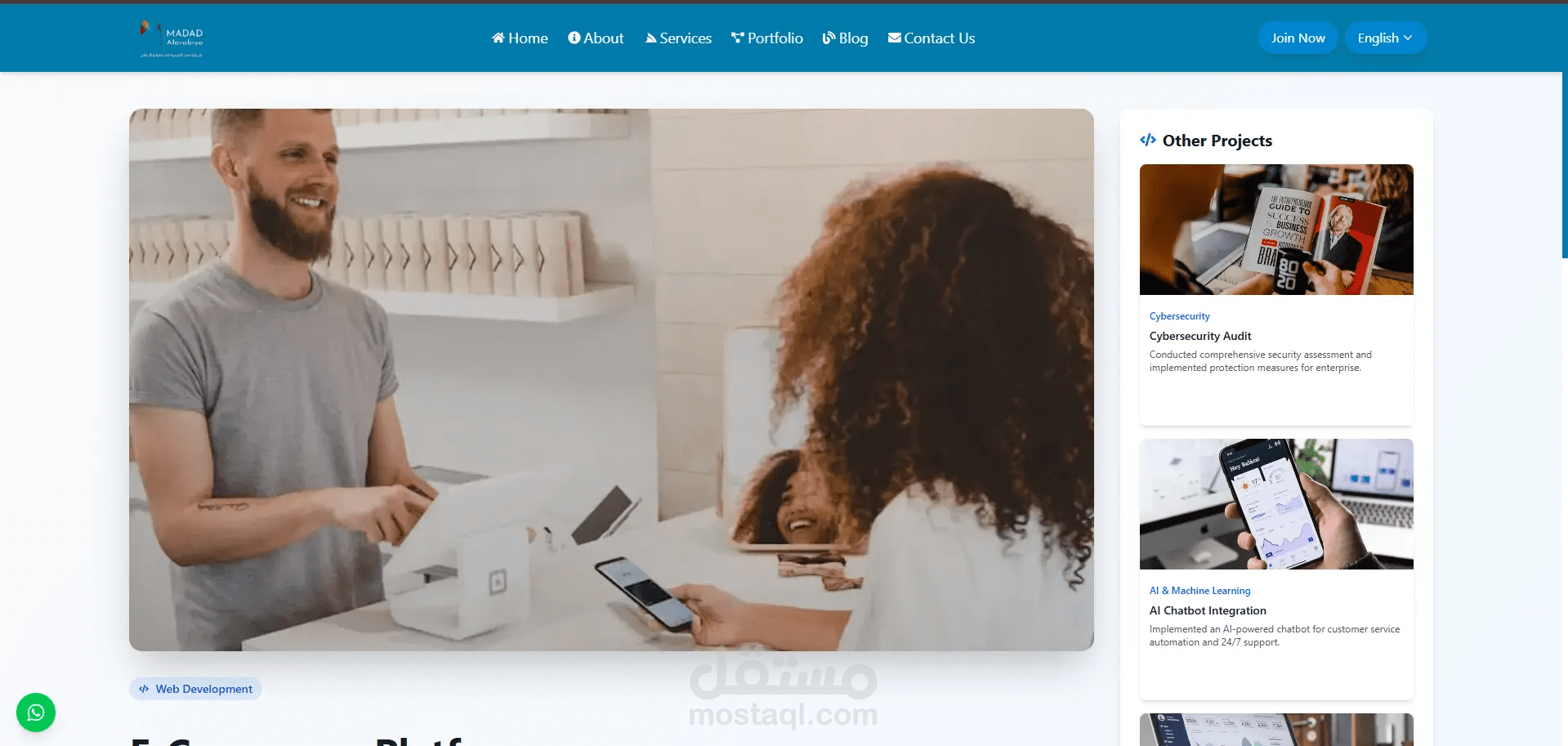 Madad هو نموذج واجهة ويب تفاعلي يعكس الهوية الرقمية لمنصة متخصصة في الخدمات الفنية، حيث يقدّم تصورًا بصريًا متكاملًا لتجربة المستخدم على الواجهة الأمامية فقط دون التطرق للجانب البرمجي الخلفي.