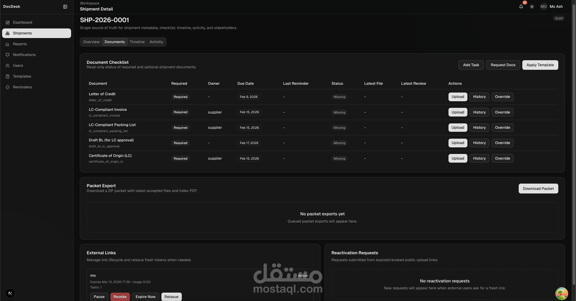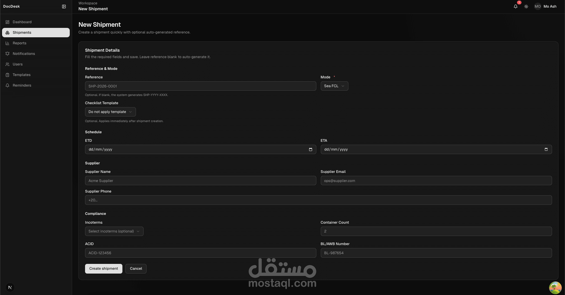 Doc Desk هو نظام لإدارة المستندات مخصص لشركات الخدمات اللوجستية، يهدف إلى تنظيم الملفات والعمليات التشغيلية ضمن منصة موحدة. يتيح النظام إدارة المستندات، والمهام، والتذكيرات، والدعوات، ورفع الملفات وتخزينها، إلى جانب متابعة العمليات المرتبطة بالشحن، مع لوحات تحليلية تساعد على تحسين المتابعة واتخاذ القرار ورفع كفاءة العمل.