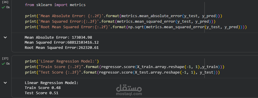 Machine learning model that predicts house prices based on house size using Linear Regression with Python.