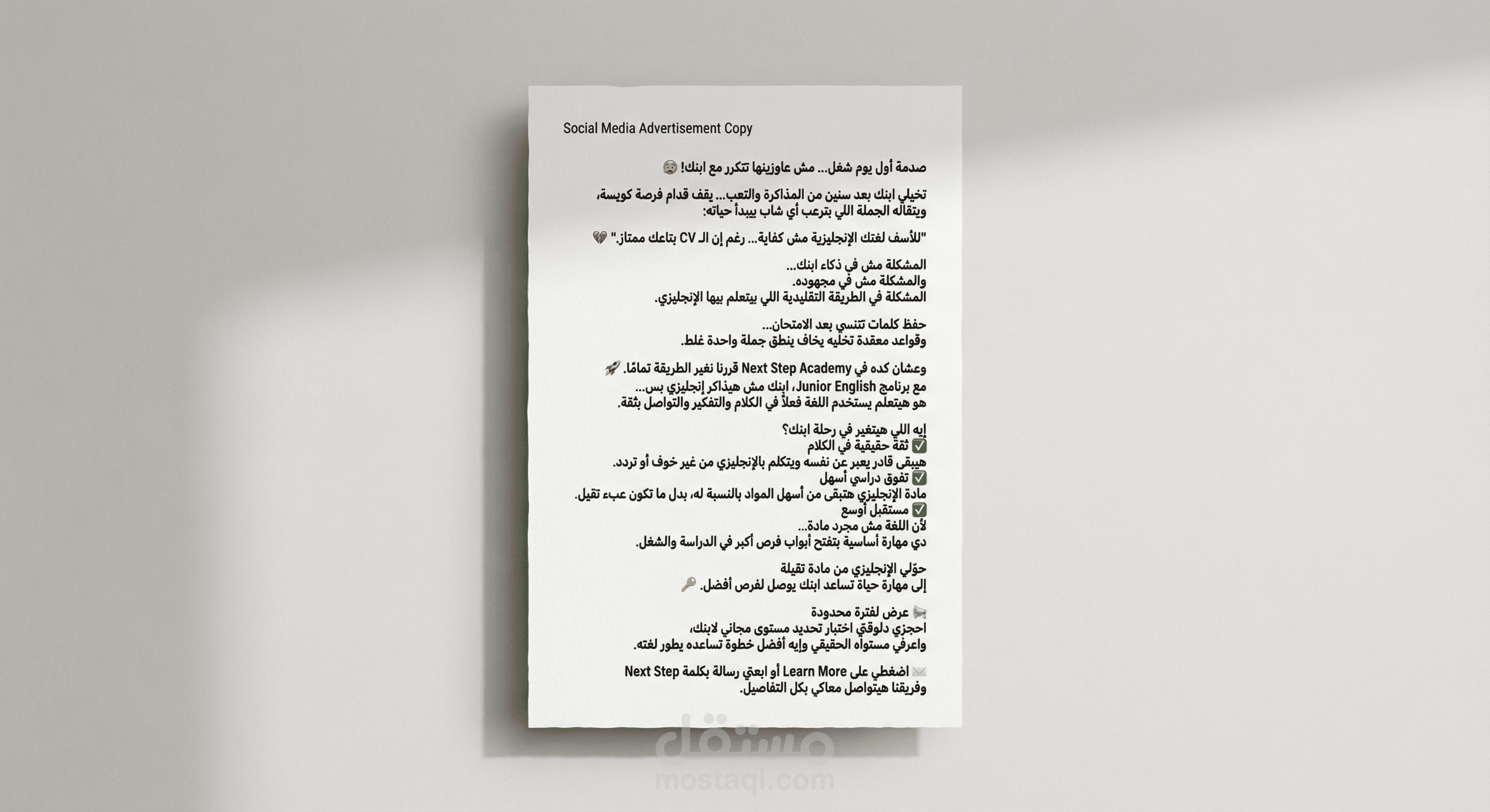 هذا هو التعاون الثاني مع Next Step Academy لتطوير هويتها البصرية على منصات التواصل الاجتماعي. بعد نجاح الحملة الأولى، ركزنا في هذه المرحلة على استهداف Target Persona مختلفة تماماً، مما تطلب تغييراً جذرياً في الاستراتيجية البصرية والمحتوى التسويقي.