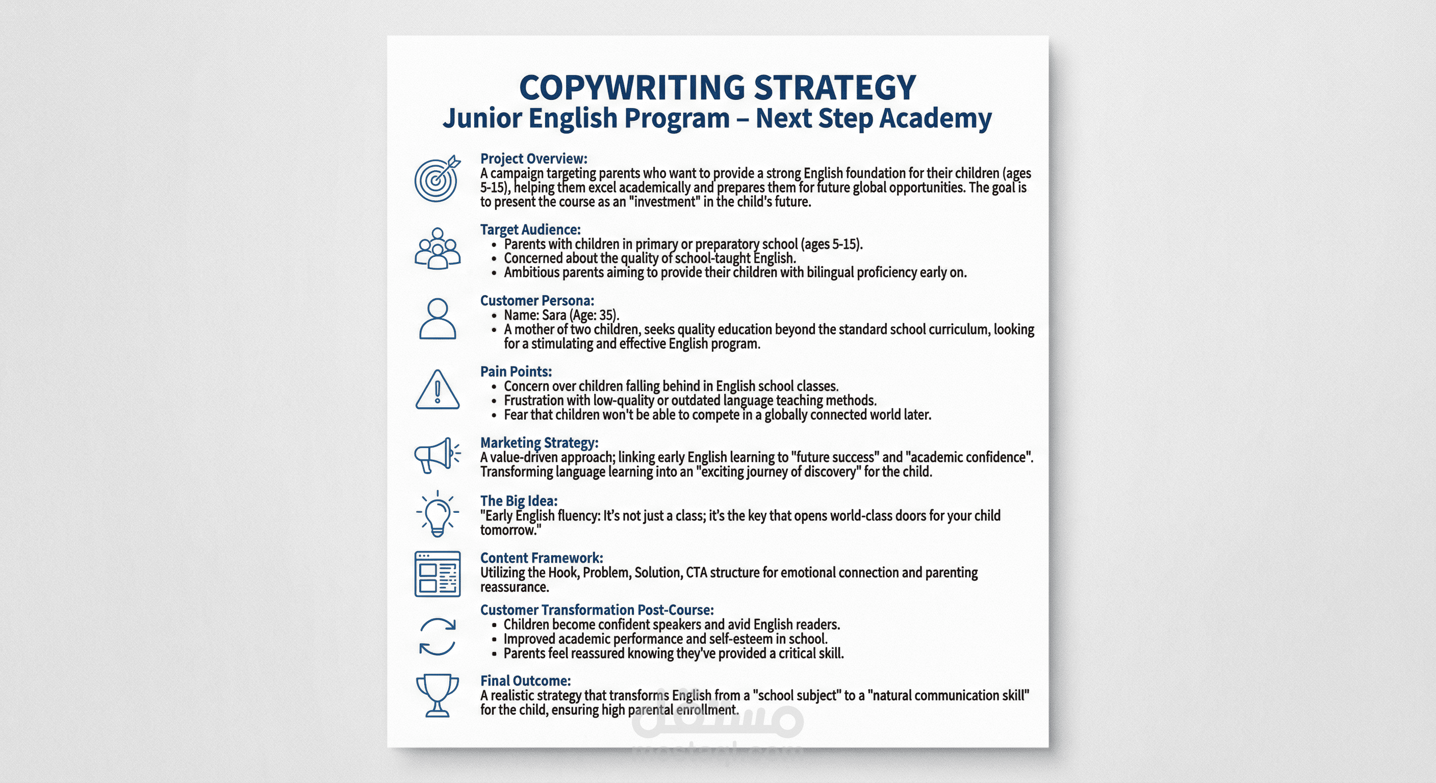 2. Copywriting Strategy (الهيكل التسويقي)