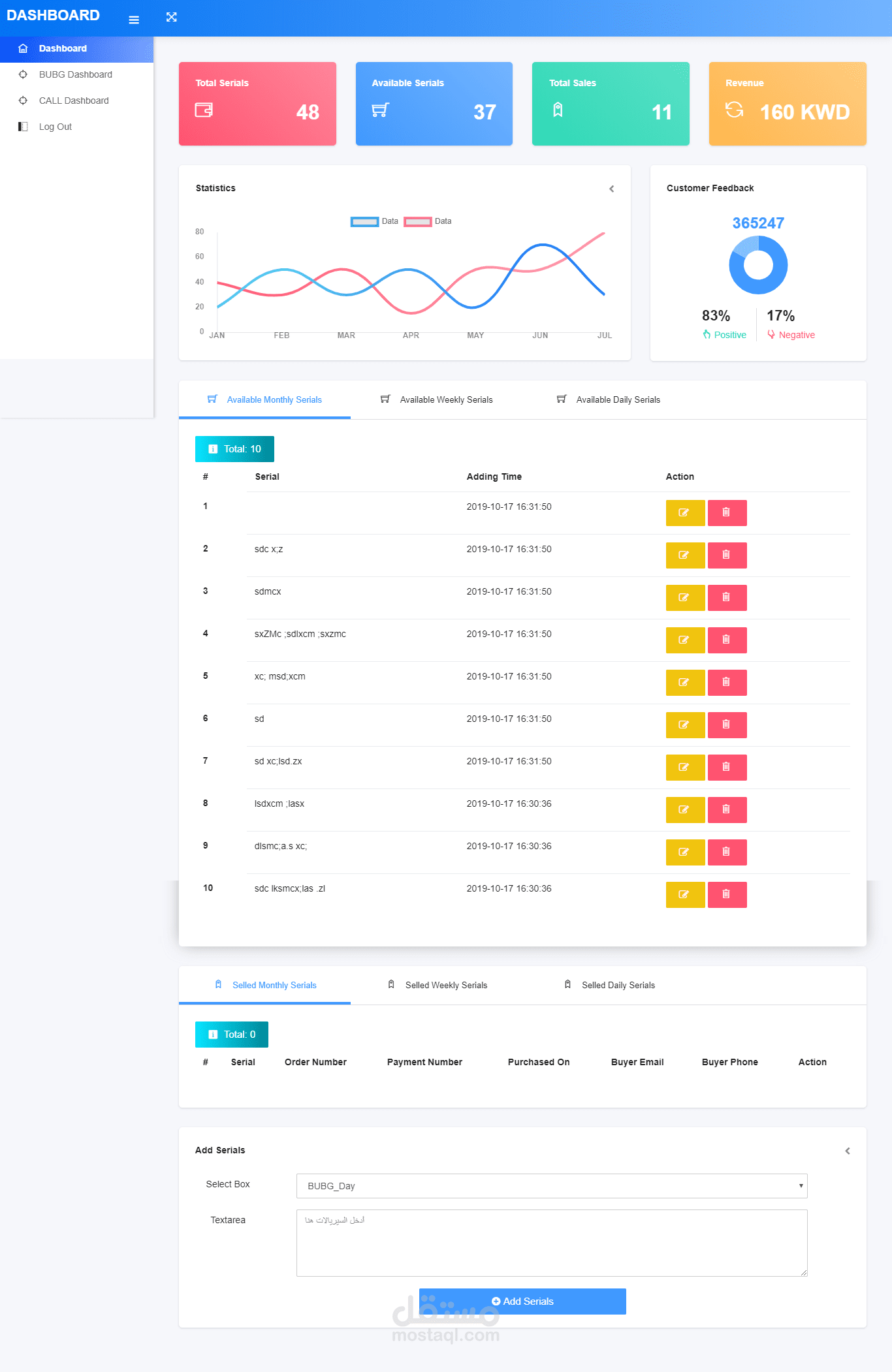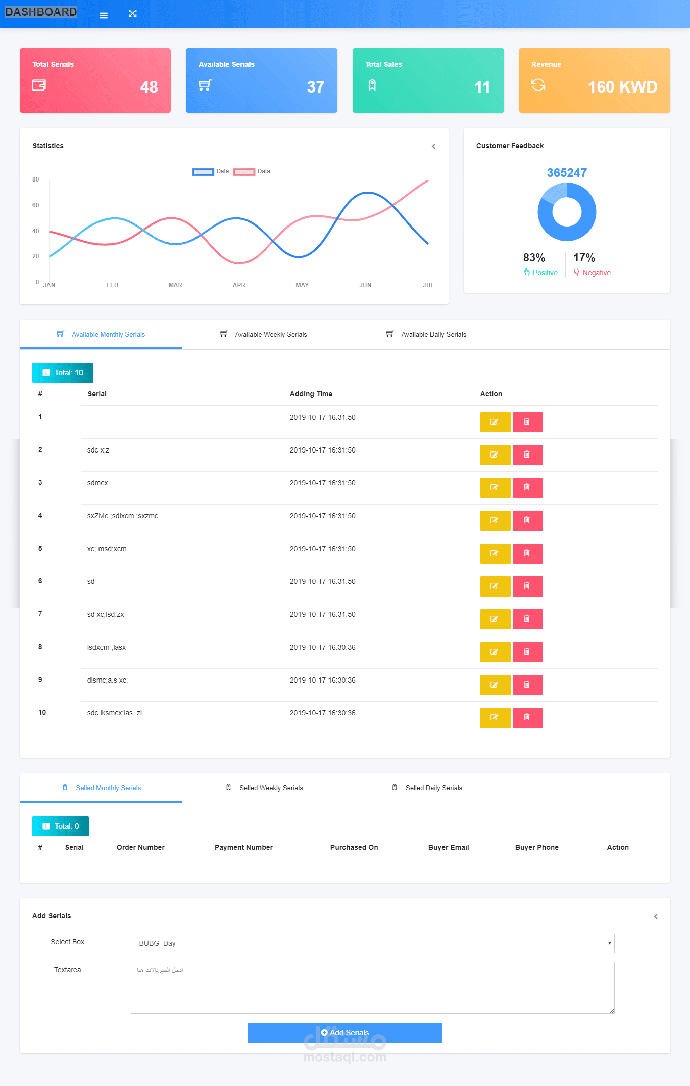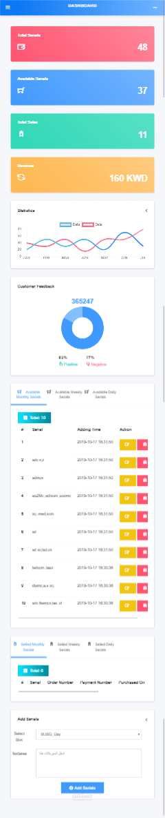وعرض احصائيات مفصله عن السيريالات المتاحه او المباعه والربح والحركات الماليه