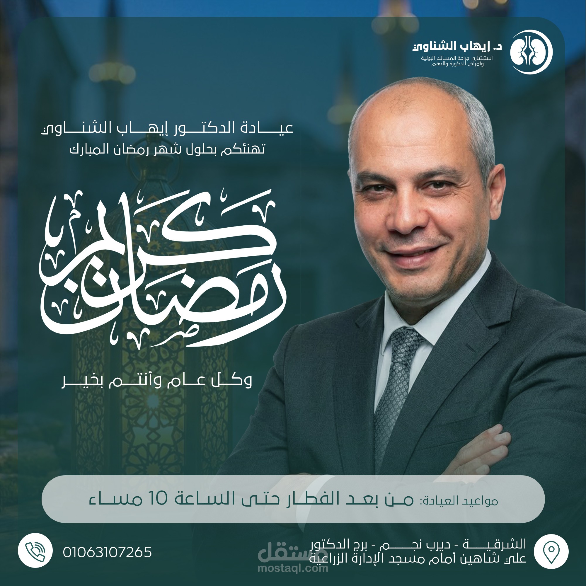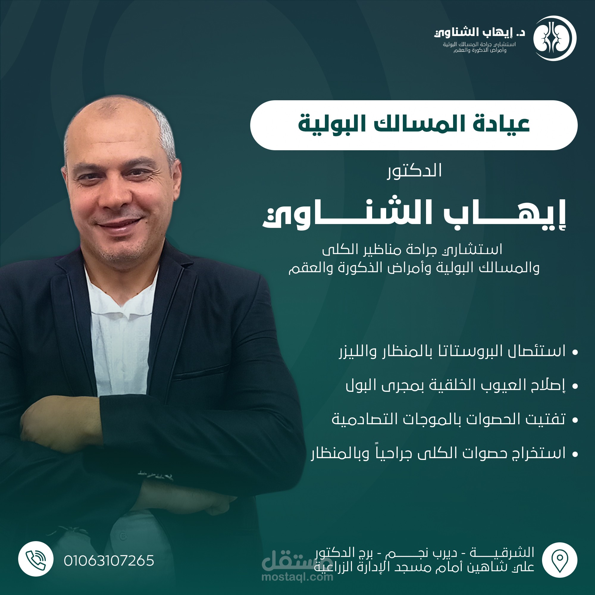 This project features a comprehensive digital branding and social media campaign designed for Dr. Ehab El-Shenawy, a consultant in Urology, Renal Surgery, Endoscopy, and Andrology & Infertility.