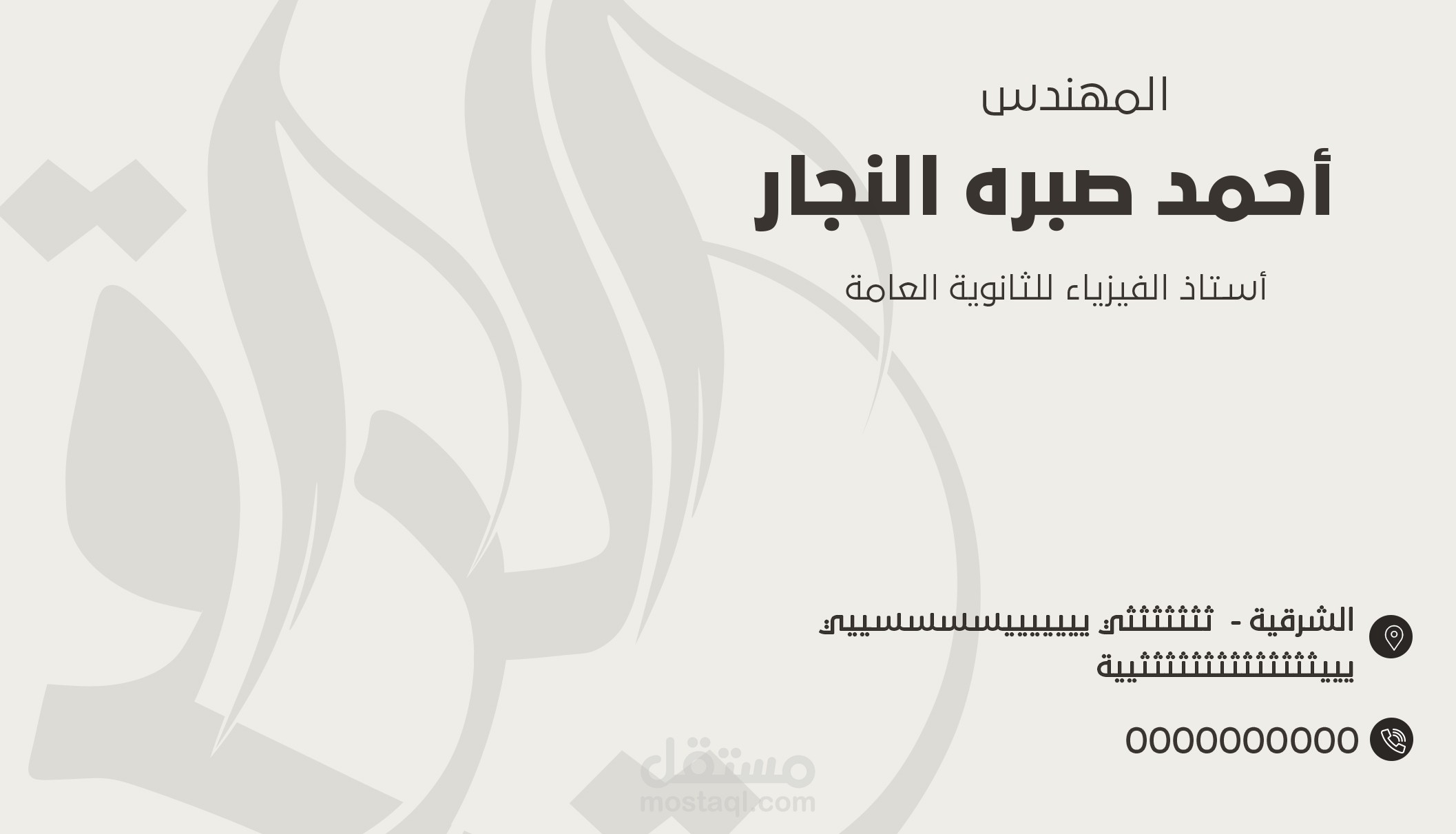 The design uses a clear typographic hierarchy to define the client's professional identity: