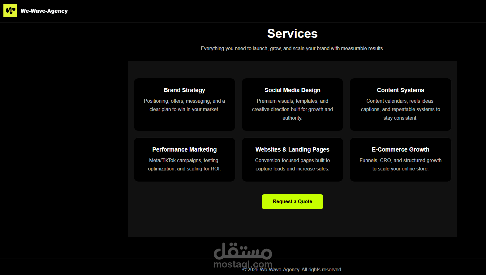 سواءً كنت تُطلق علامة تجارية جديدة أو تُوسّع نطاق عملك القائم، فإننا نبني البنية التحتية الرقمية اللازمة لتحقيق نمو مُستدام ونجاح ملموس.