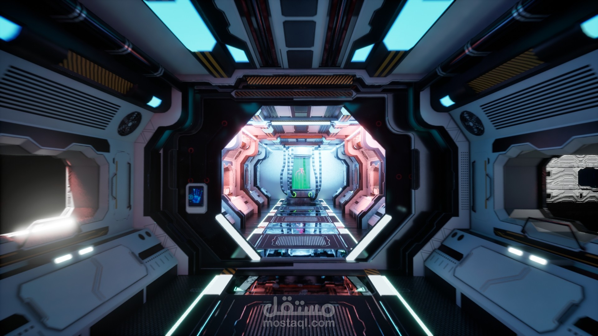 sci-fi corridor straight out of a futuristic space adventure! Modeled modularly in Maya, textured in Substance Painter, and brought to life with Unreal’s lighting and rendering—ready for aliens, robots, or anyone who forgot where they parked their spaceship.