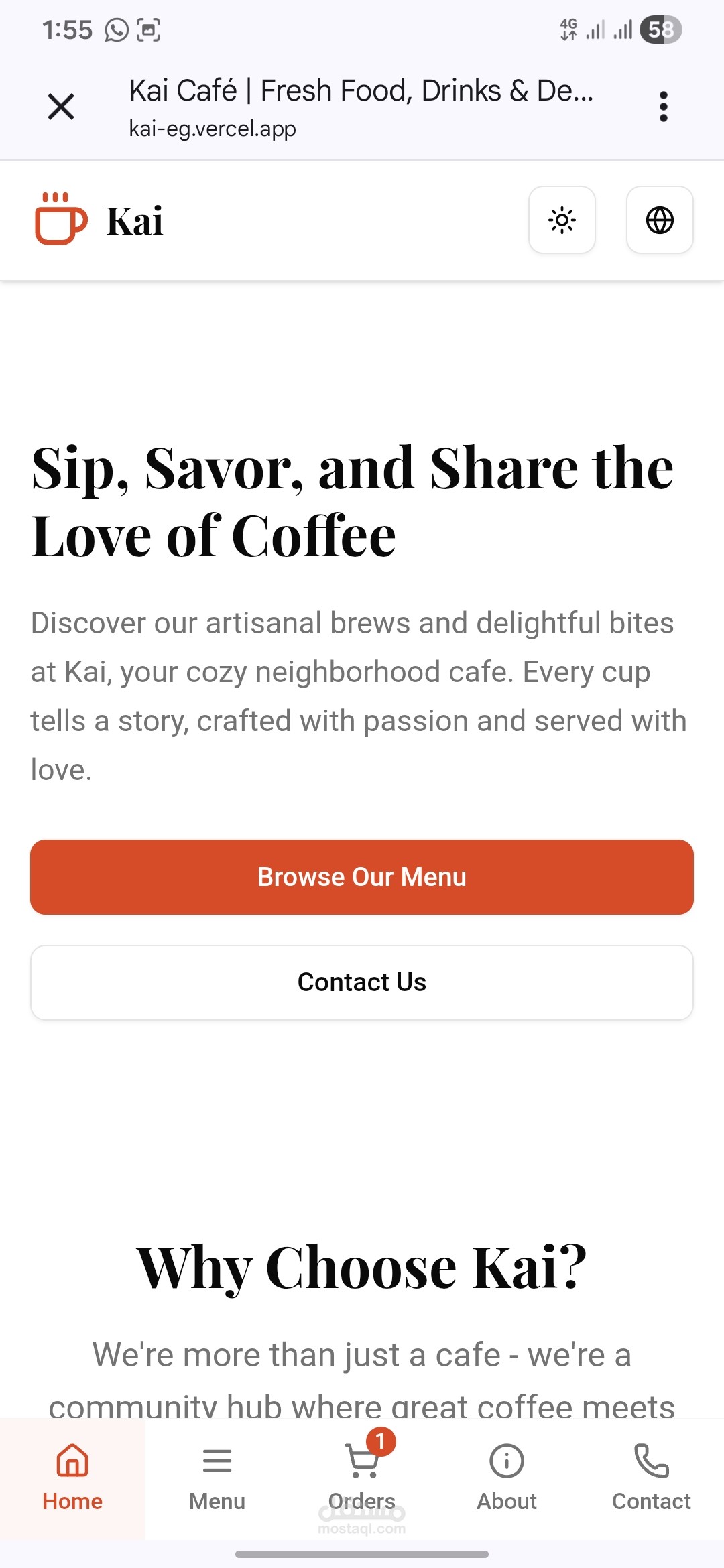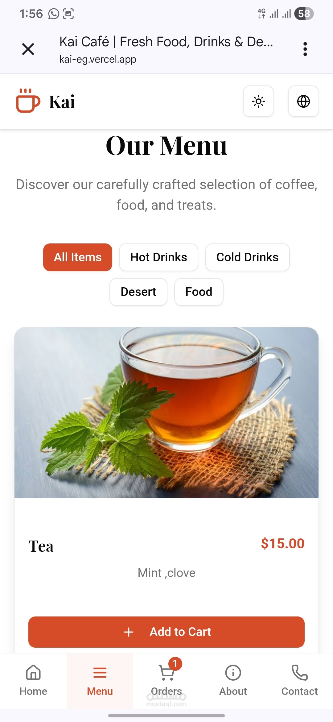يسمح للزوار برؤية قائمة الطعام وطلب الطلبات وحجز المواعيد والتواصل مع إدارة المطعم