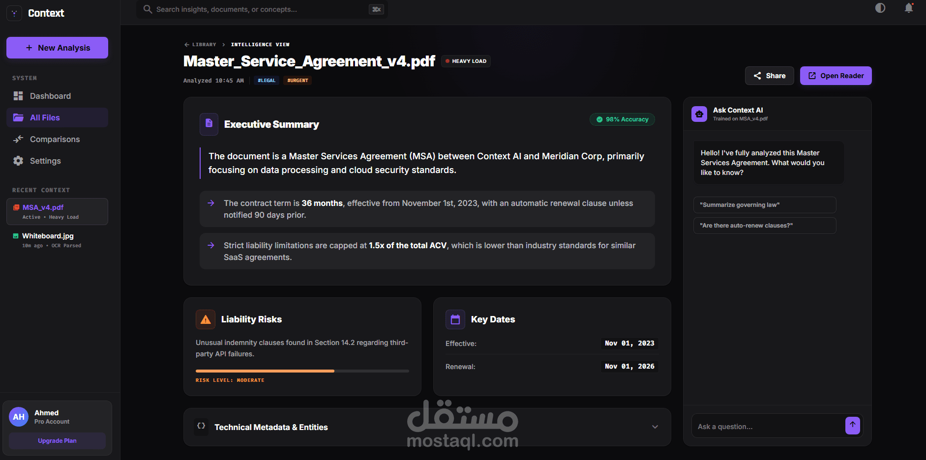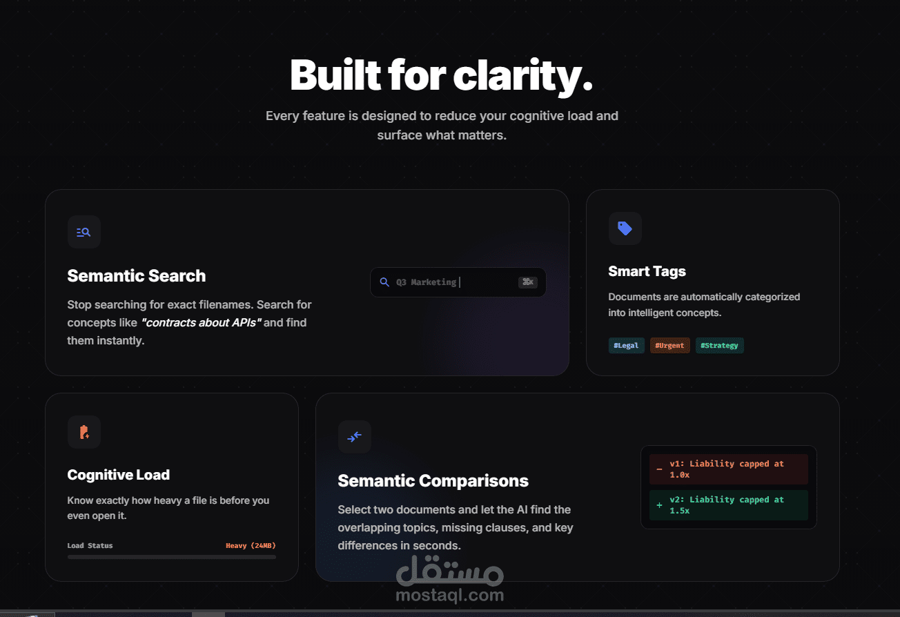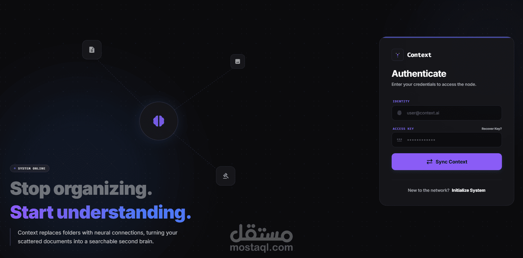 مشروع "Context" هو تطبيق ويب متقدم يعمل كمحرك معالجة دلالي . يهدف المشروع إلى استبدال نظام المجلدات التقليدي بنظام ملفات ذكي يعتمد على الفهم الدلالي لمحتوى المستندات، مما يساهم في تبسيط وتطوير سير العمل الحديث للشركات والأفراد.
