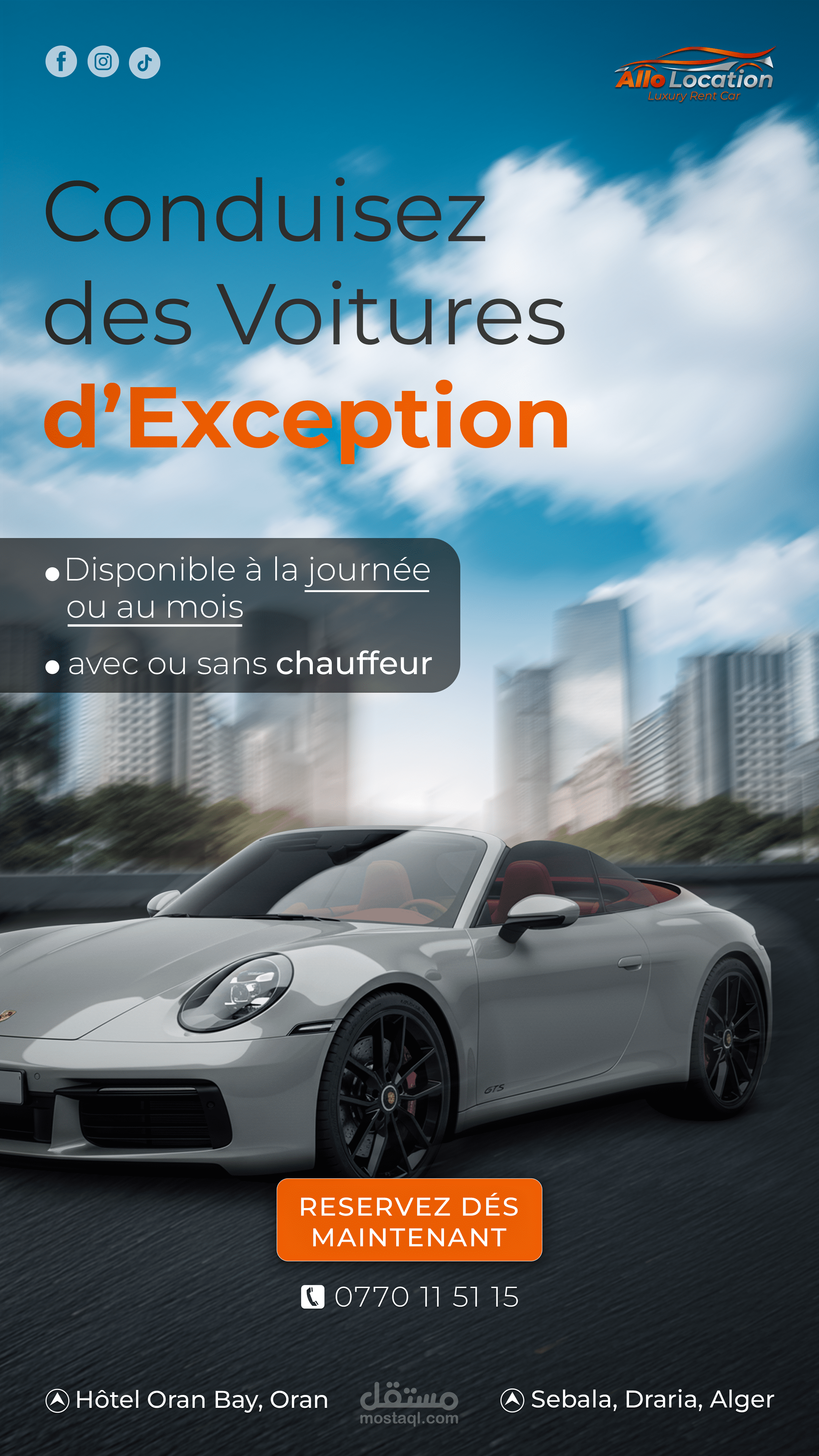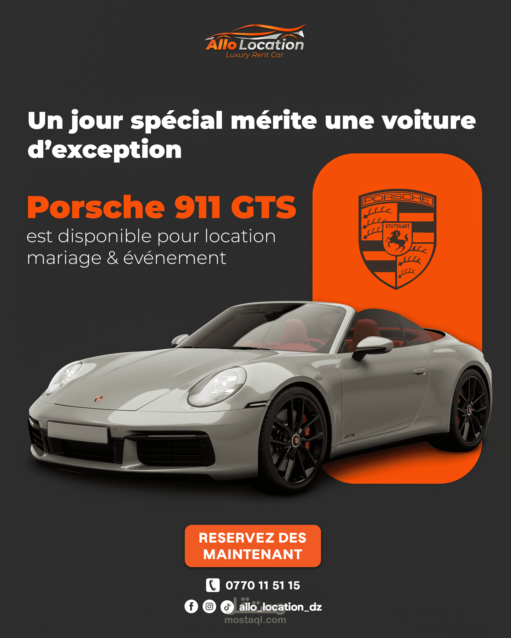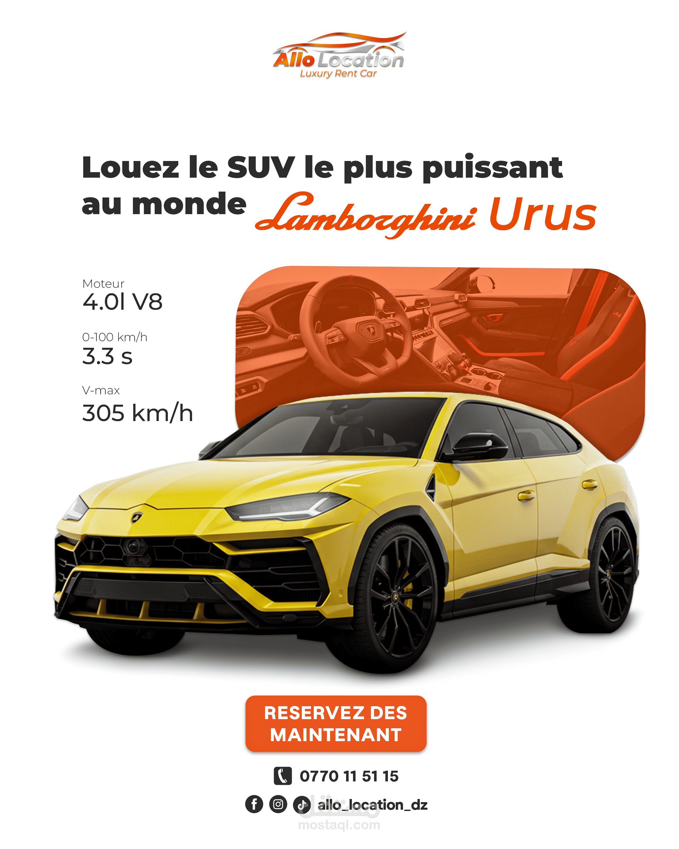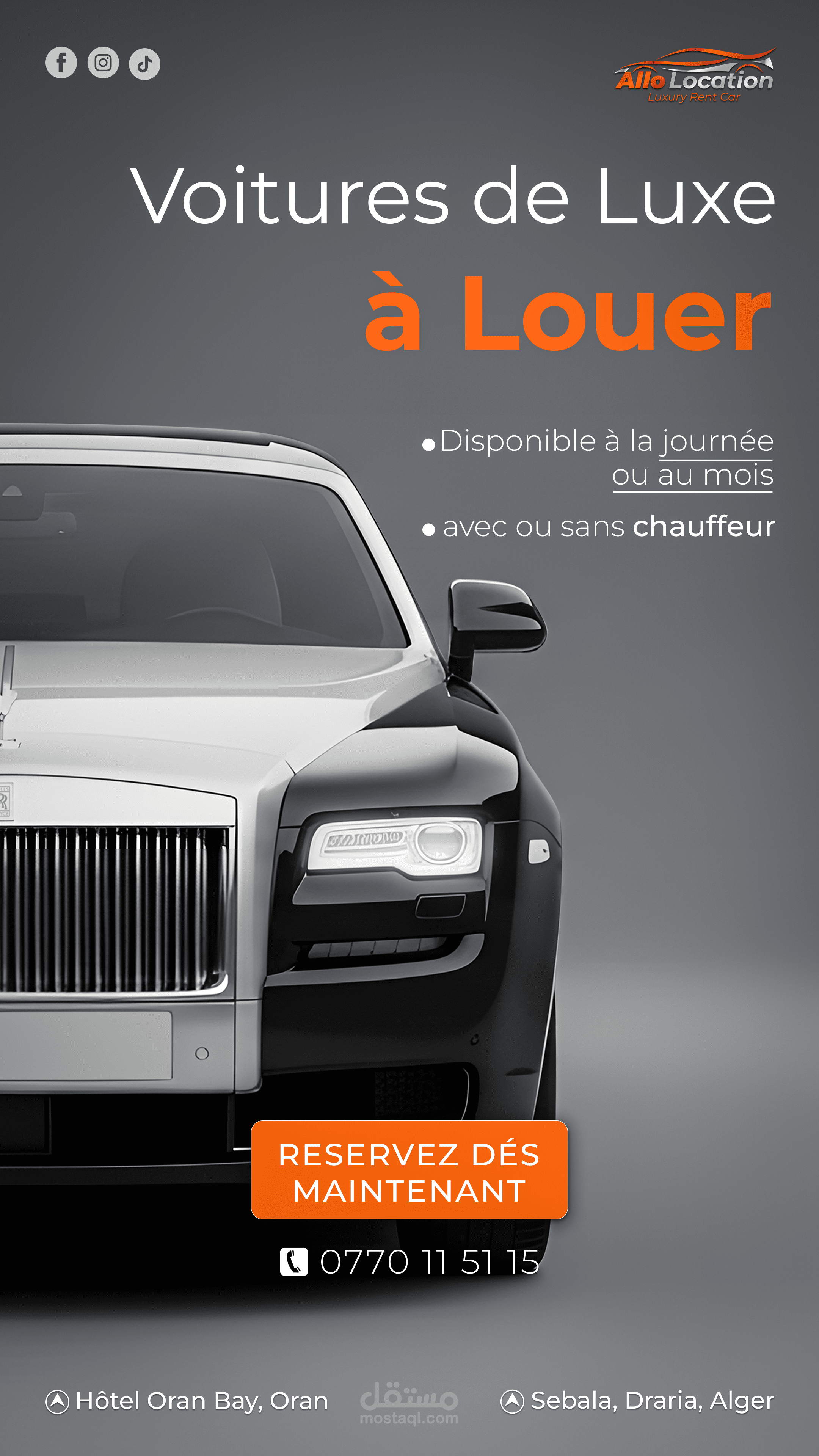 نماذج من تصاميم الإعلانات والسوشيال ميديا لعلامة متخصصة في تأجير السيارات الفاخرة، تم تنفيذها بأسلوب بصري احترافي يبرز تفاصيل السيارات ويعزز حضور العلامة على المنصات الرقمية