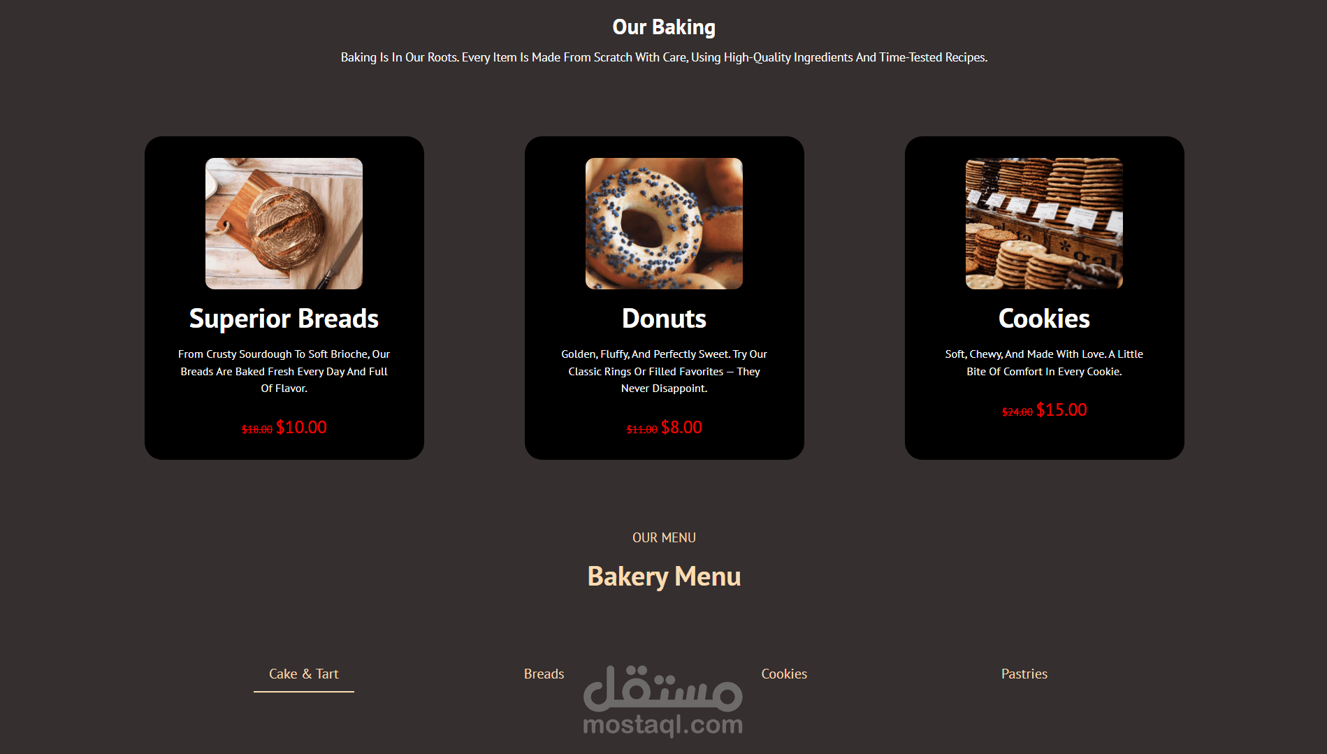 قمت بتصميم وتطوير صفحة هبوط (Landing Page) خاصة بمخبز، بهدف إنشاء واجهة مستخدم جذابة ومتجاوبة تعمل بشكل جيد على مختلف الأجهزة.