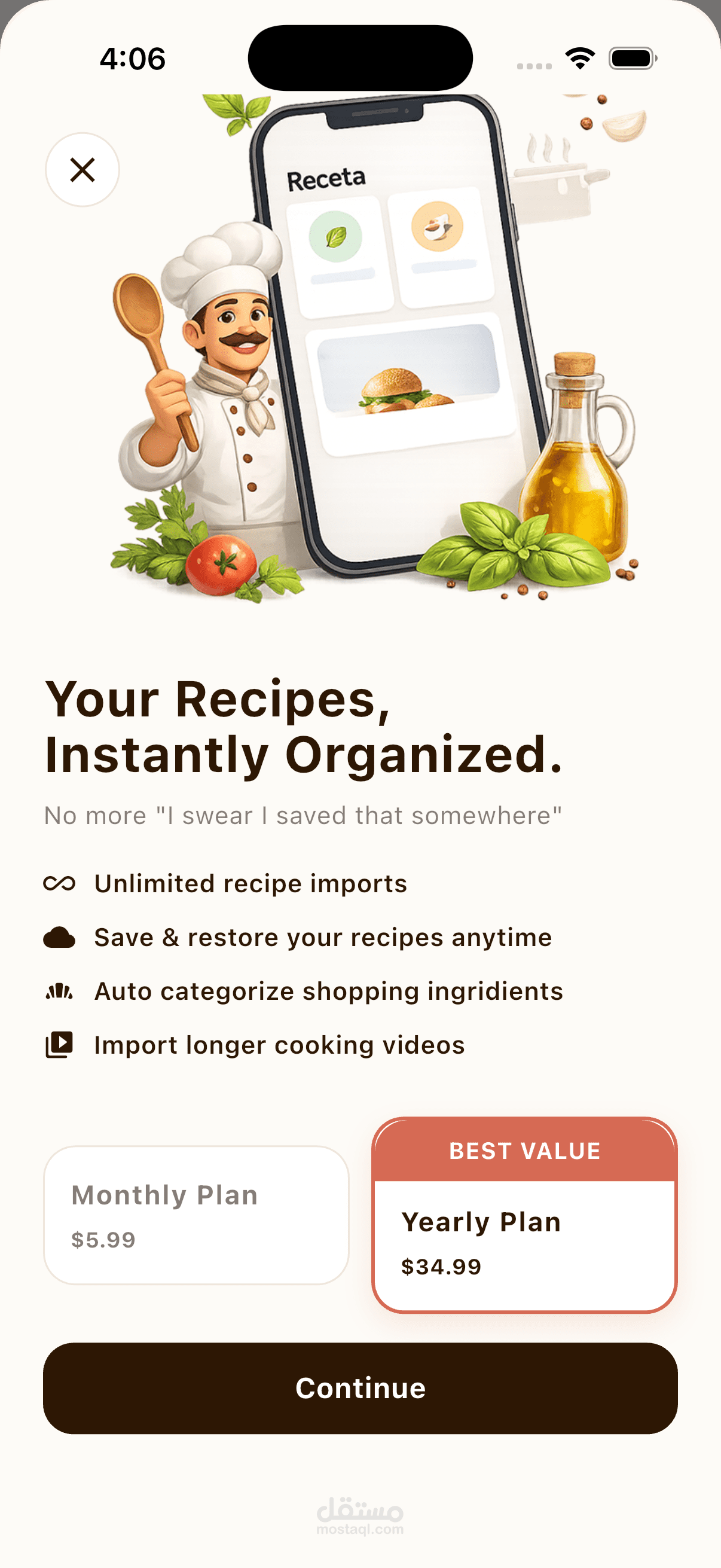 يتضمن التطبيق أيضًا نموذج اشتراك بسيط حيث يمكن للمستخدمين تجربة التطبيق مجانًا مع عدد محدود من الوصفات، بينما يتيح الاشتراك المدفوع إمكانية استيراد وحفظ عدد غير محدود من الوصفات.