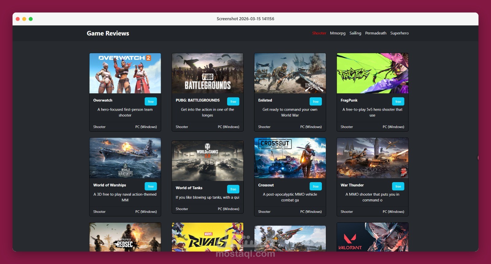مشروع موقع لعرض ألعاب الفيديو (Video Games Website) يتيح للمستخدمين استكشاف مجموعة متنوعة من الألعاب مع عرض معلومات أساسية عن كل لعبة بطريقة منظمة وجذابة.