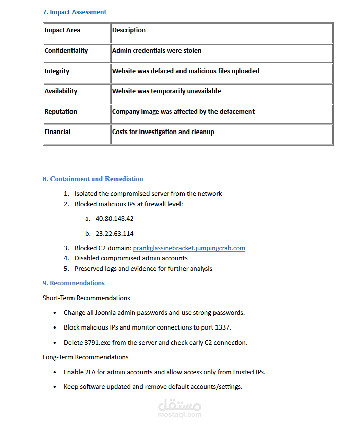 وفي النهاية، التقرير بيقدم **impact assessment**، و**containment actions**، وكمان **security recommendations** علشان يساعد في **prevent similar attacks** في المستقبل.